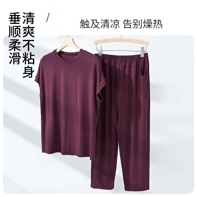 Летняя тонкая пижама для матери, шелковые нарукавники для пожилых людей, комплект, для среднего возраста, короткий рукав