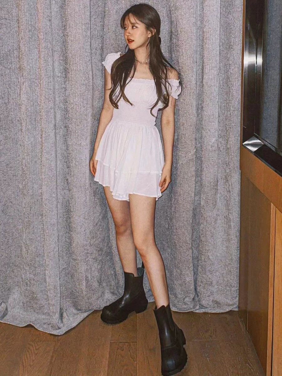 Ретро белое платье, приталенный корсет, бюстгальтер-топ, мини-юбка, французский стиль, квадратный вырез