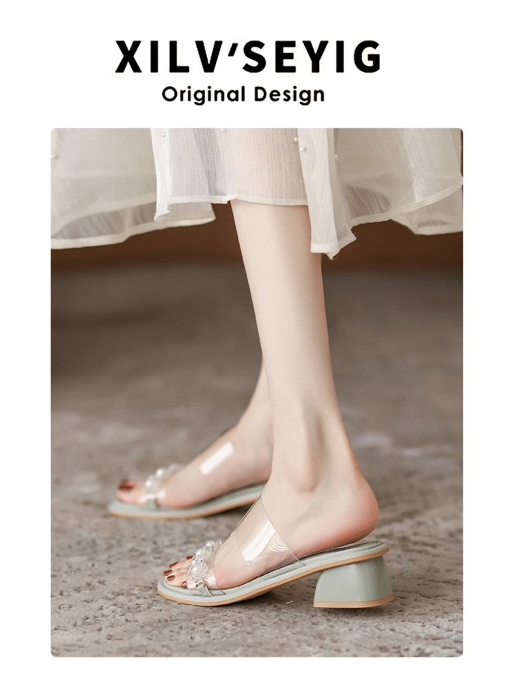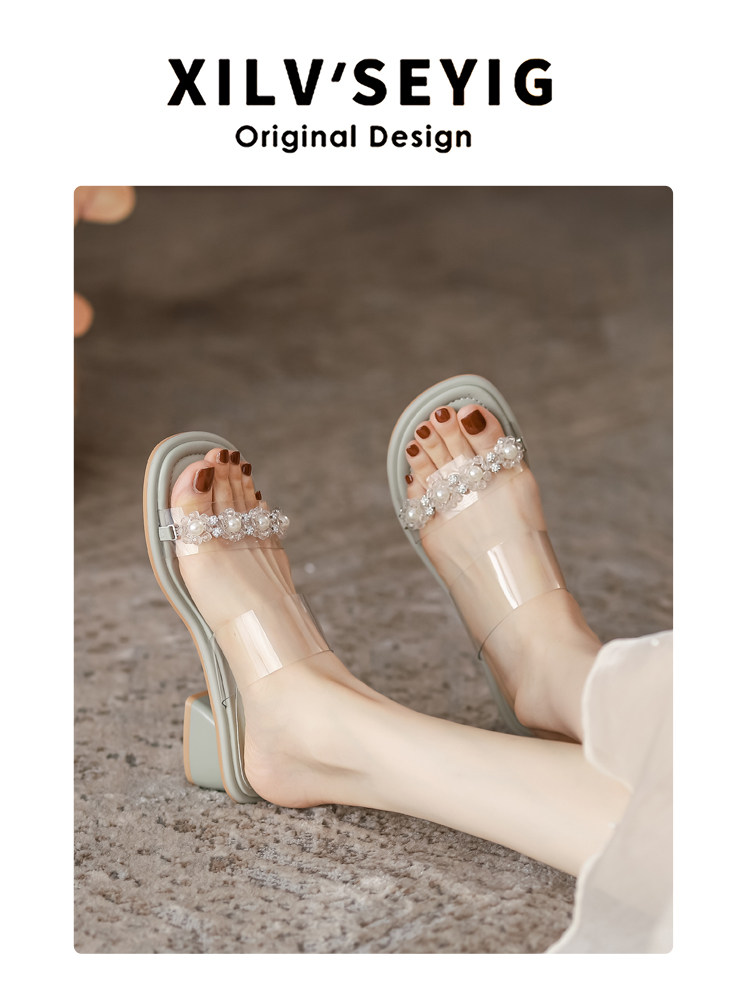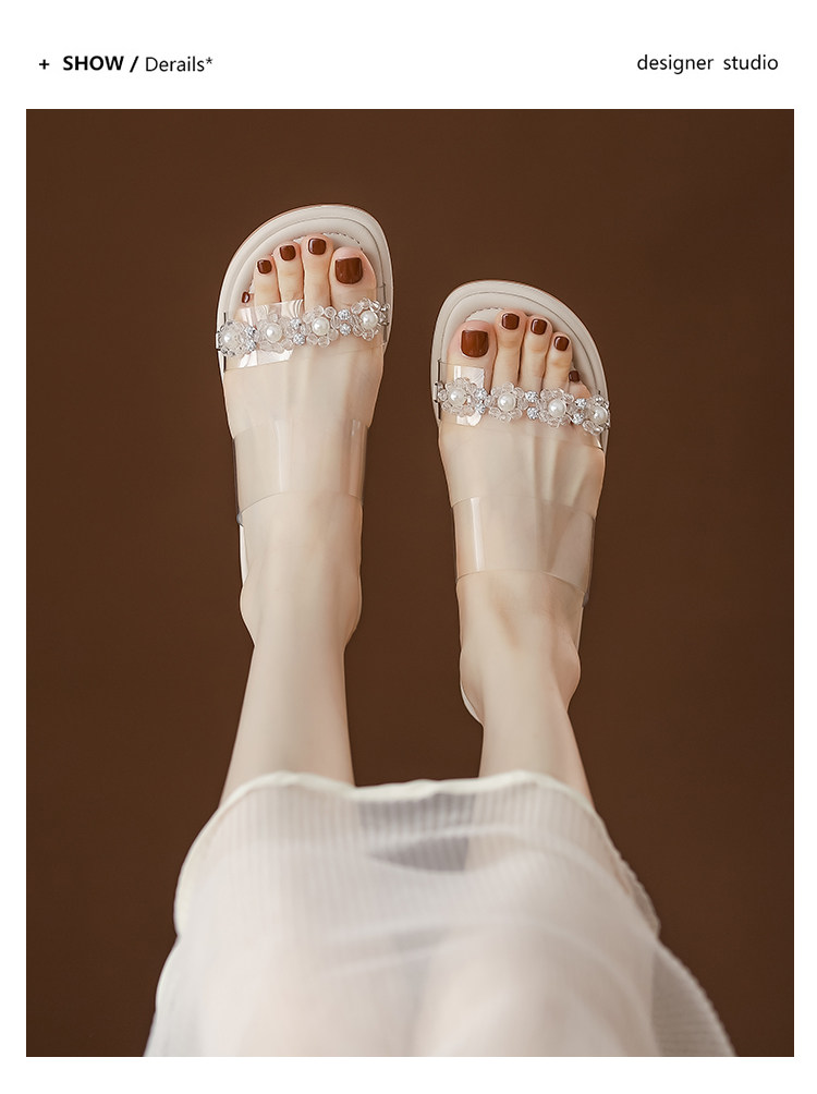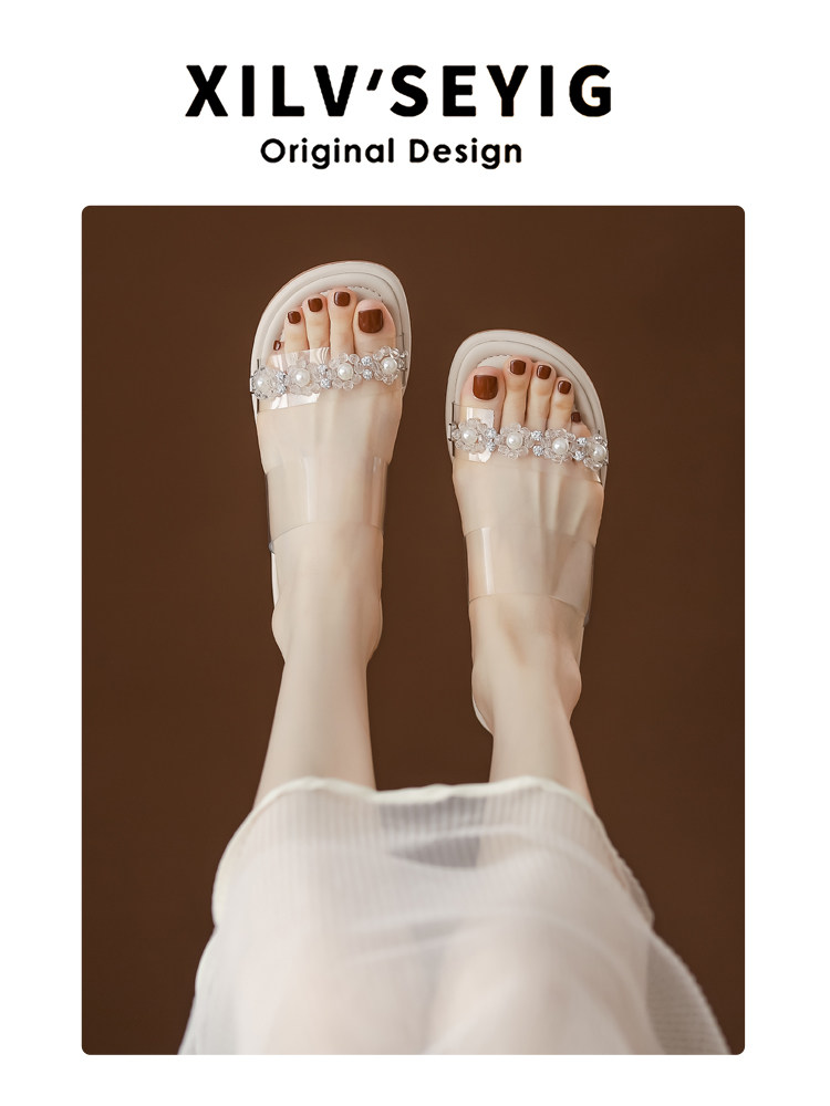 Сандалии самка XIA Грубая высота прозрачная словесная перетаскивание движений фильтры каблуки песчаные сандалии широкие футбольные женские туфли больших размеров 41 43