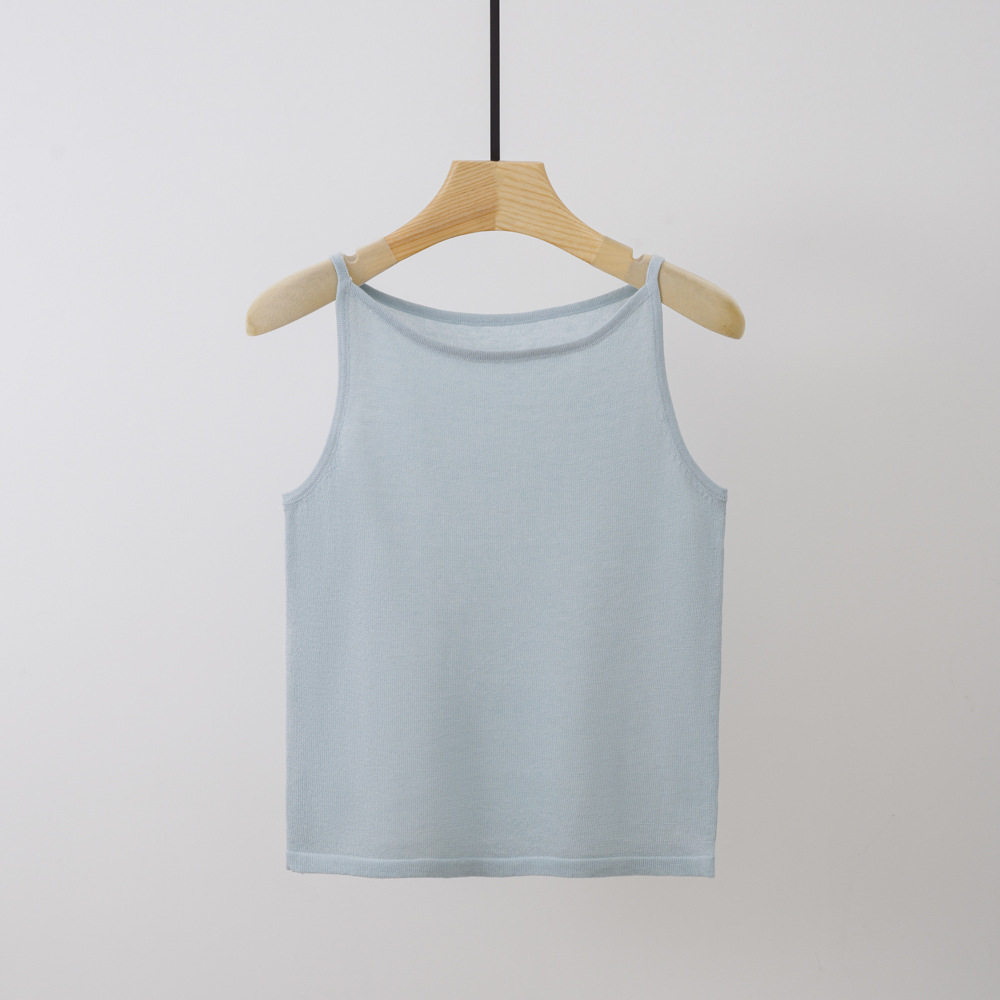 Летняя дышащая майка топ без рукавов, высокий воротник, для маленькой груди