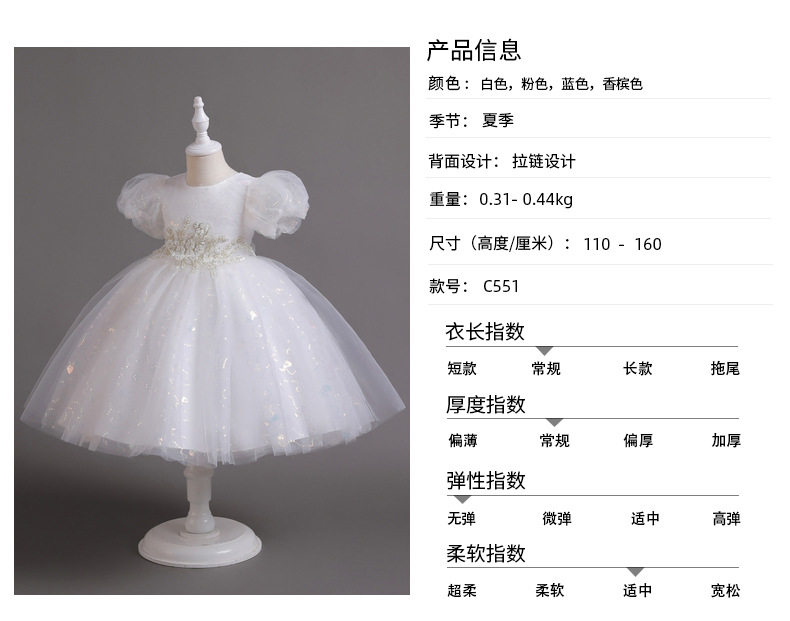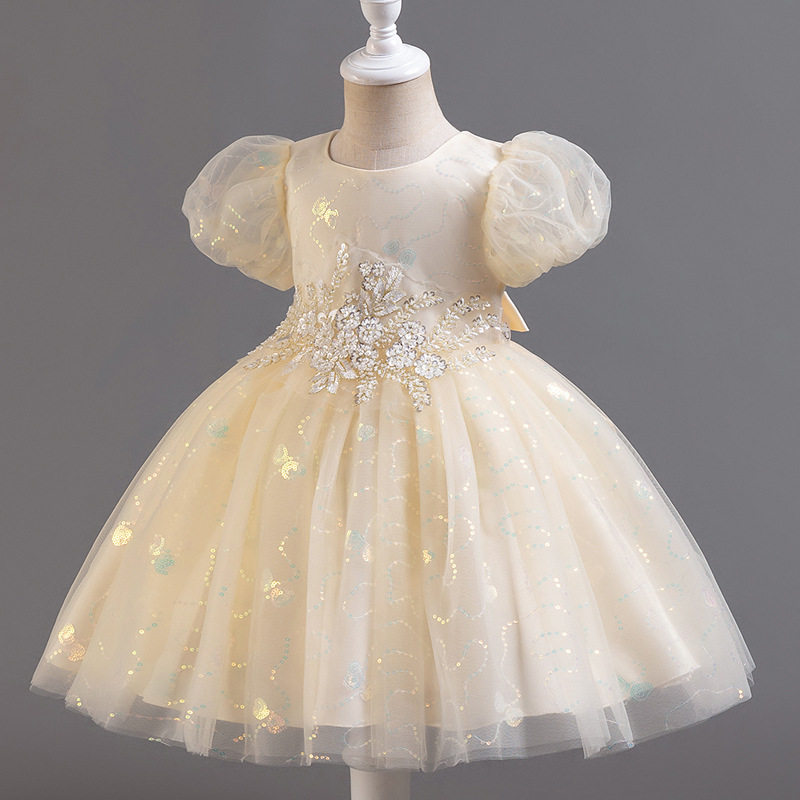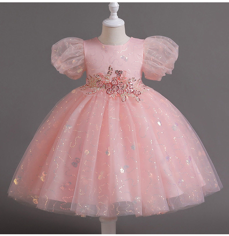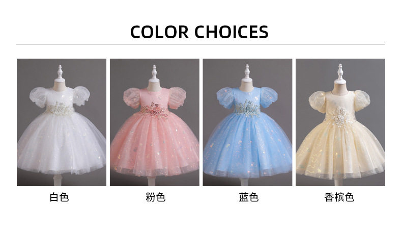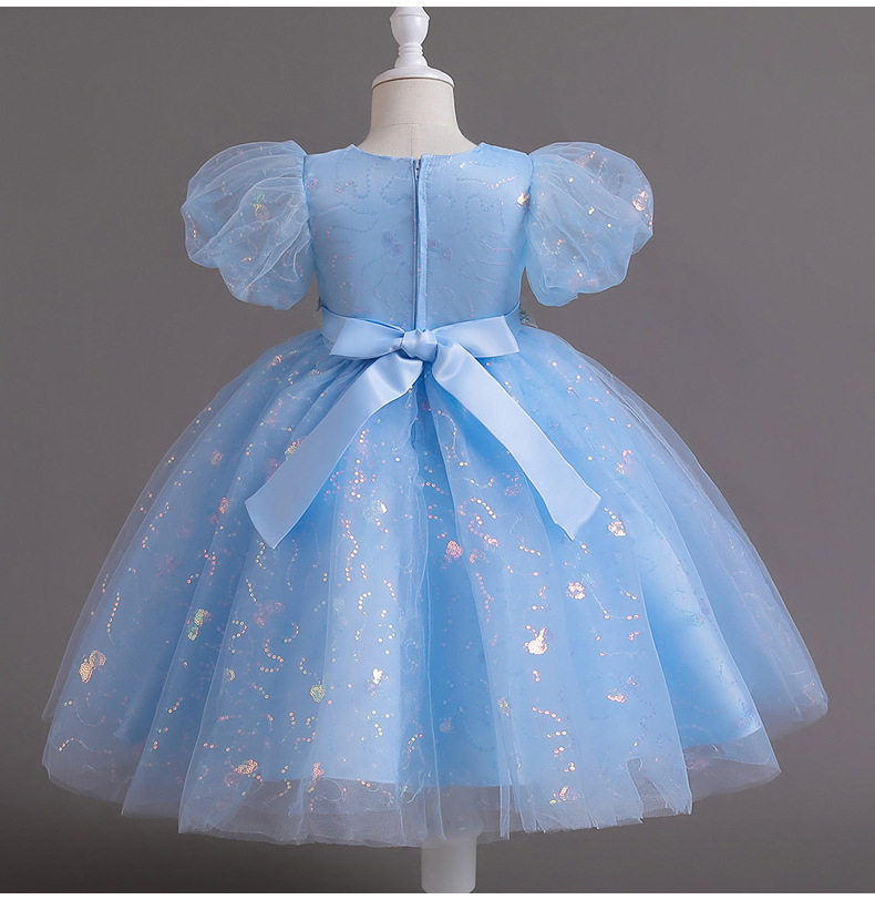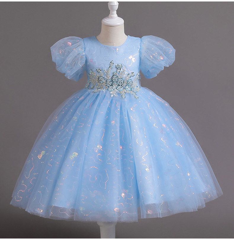 Лазурный наряд маленькой принцессы, летняя одежда, платье, короткий рукав, с блестками