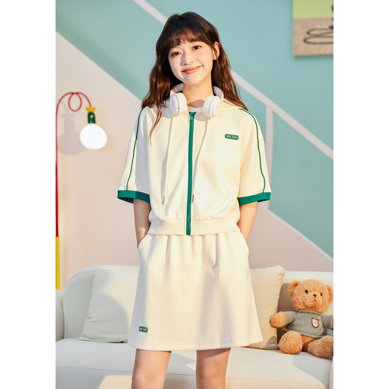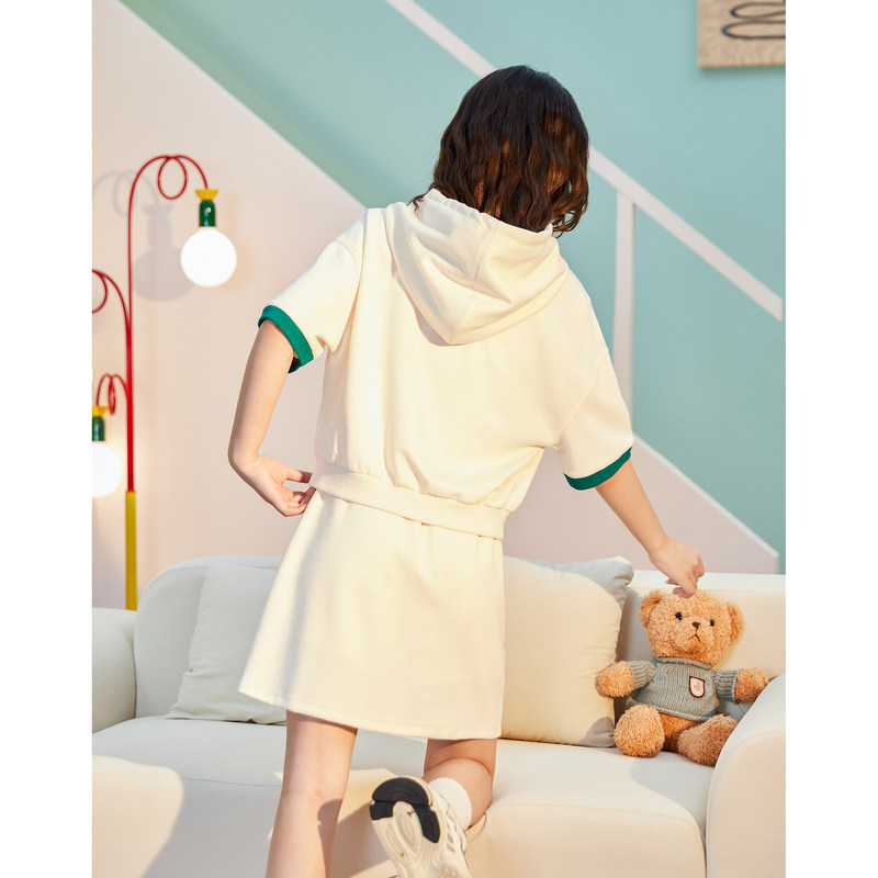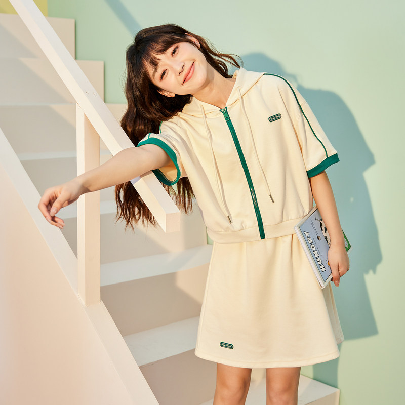 Летняя одежда, комплект, спортивный спортивный костюм, трикотажное платье с капюшоном, кардиган, мини-юбка, короткий рукав