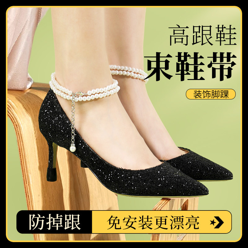 Шнурок-держатель, шнурки, туфли на высоком каблуке из жемчуга без каблука, ремень, фиксаторы в комплекте