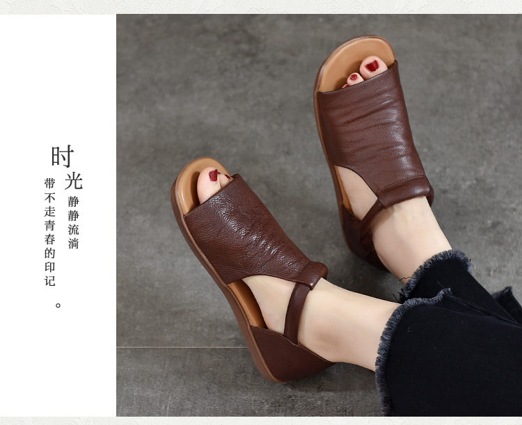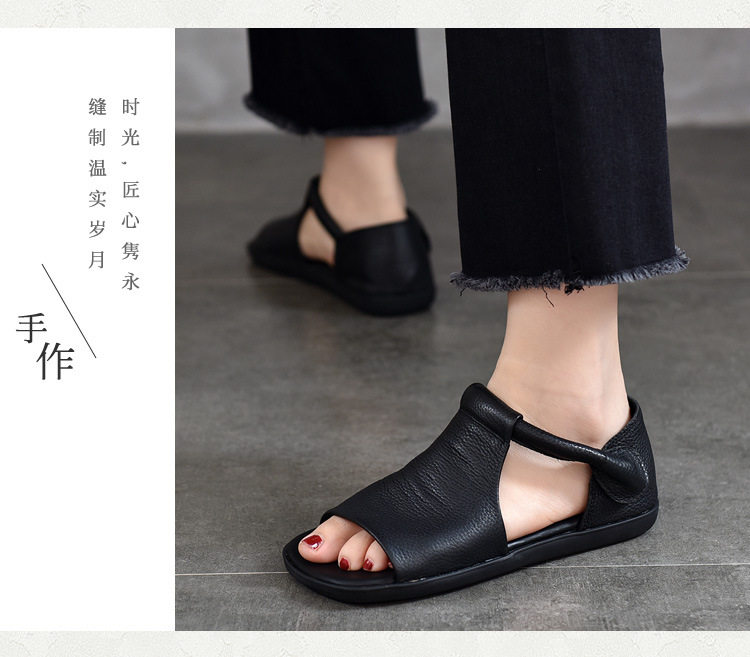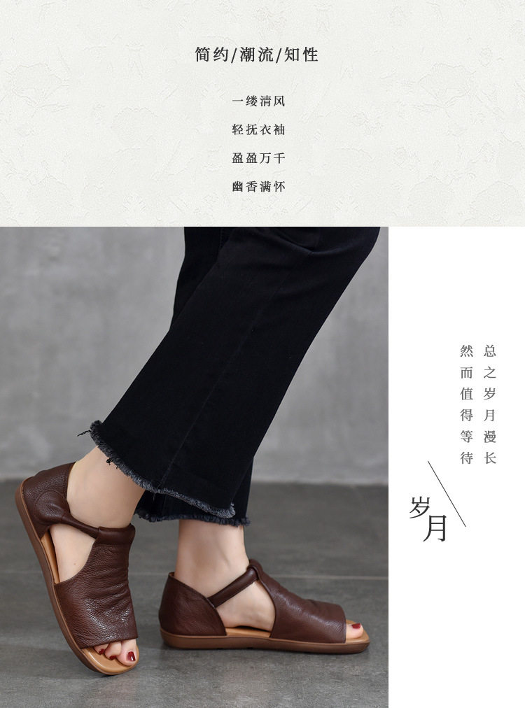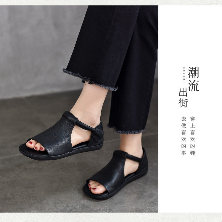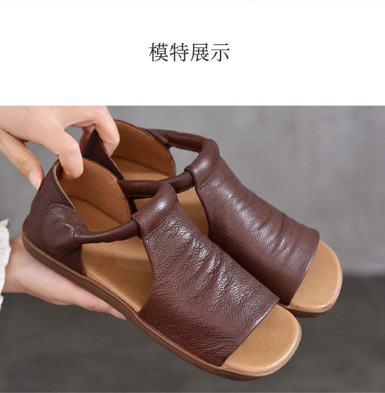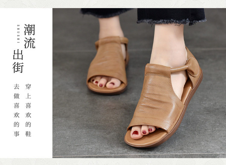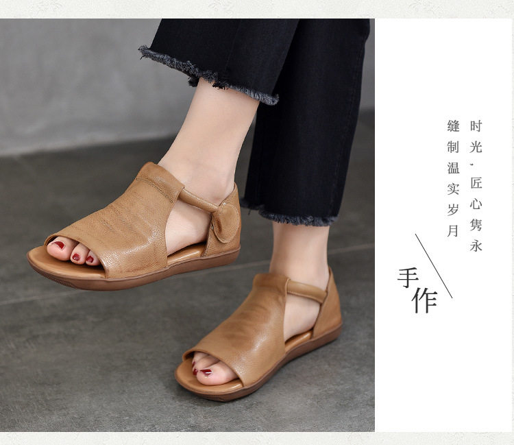 Летние ретро босоножки на липучке, из натуральной кожи, мягкая подошва