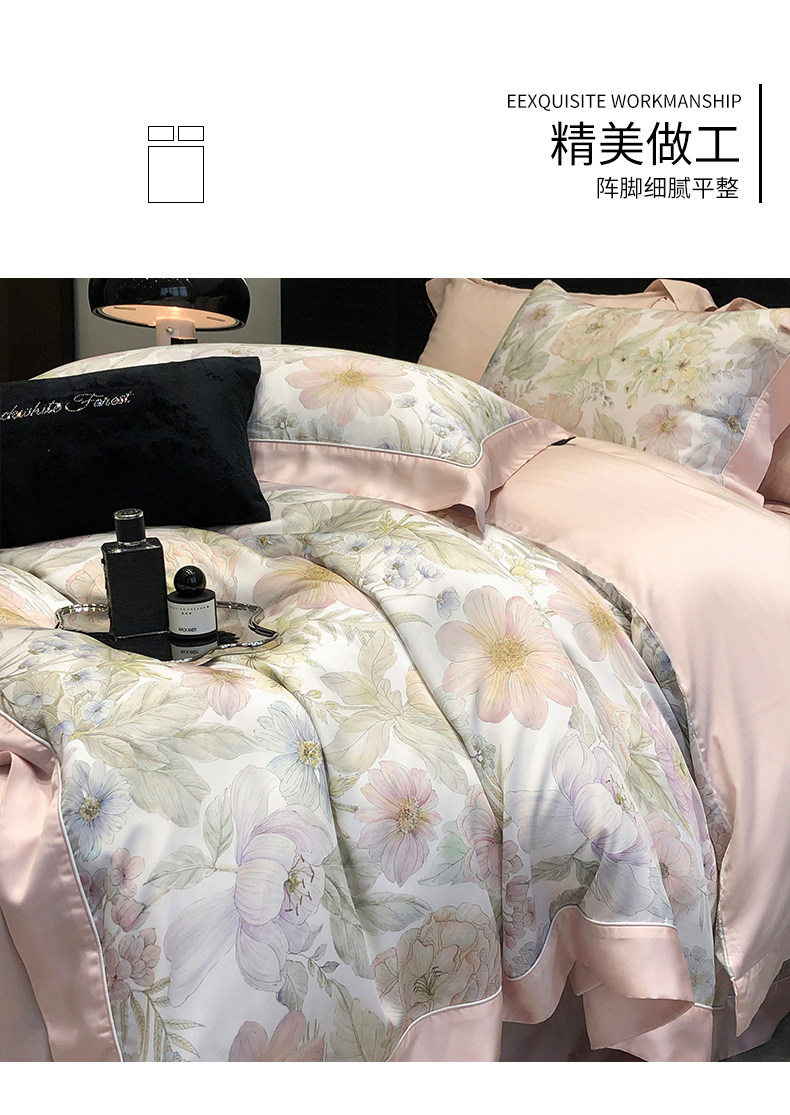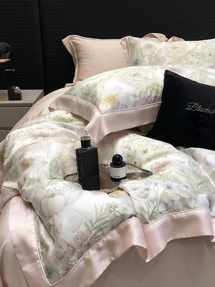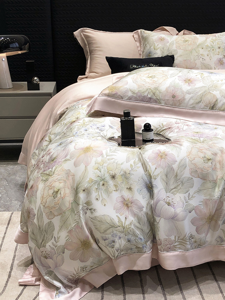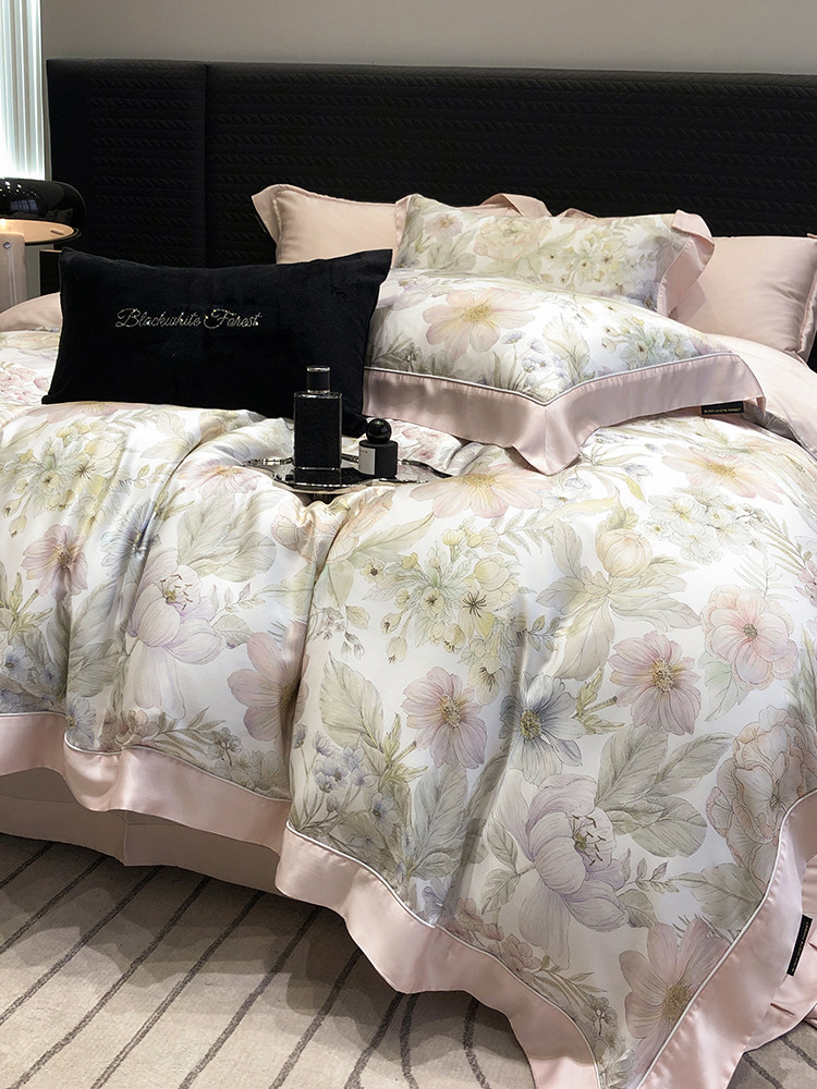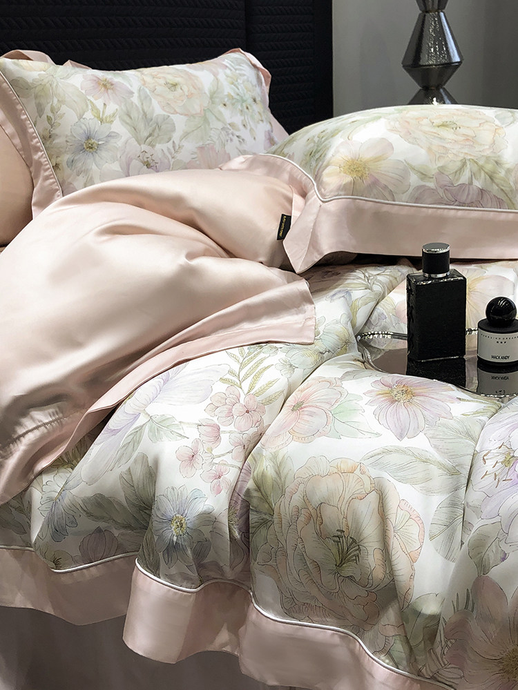 Импортный шелковый комплект, шелковистая простыня, пододеяльник, покрывало, 4 предмета