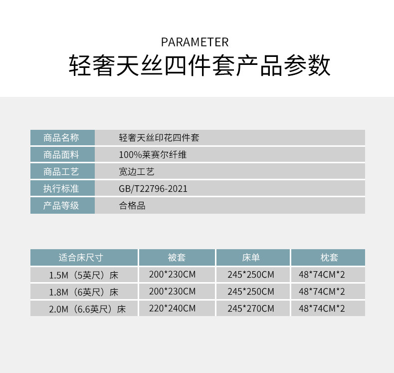 | Применимый размер кровати: | Простыня, пододеяльник, комплект, 1.5м, 4 предмета, Простыня, пододеяльник, комплект, 1.8м, 4 предмета, Простыня, пододеяльник, комплект, 2.0м, 4 предмета, Простыня, пододеяльник, комплект, 2.2м, 4 предмета |