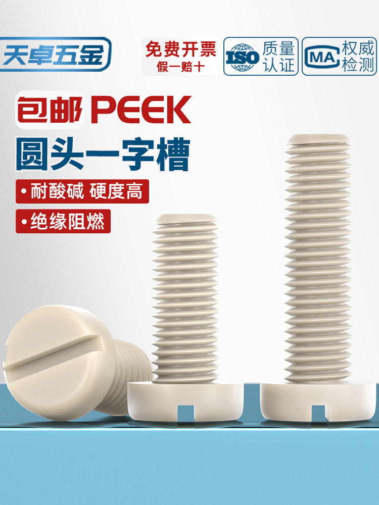 Изоляционная смола, устойчивая к кислотам и щелочам, устойчивая к высоким температурам из полиэфирэфиркетона (PEEK), высокопрочные пластиковые винты и болты с полукруглой головкой и прорезями с круглой головкой.