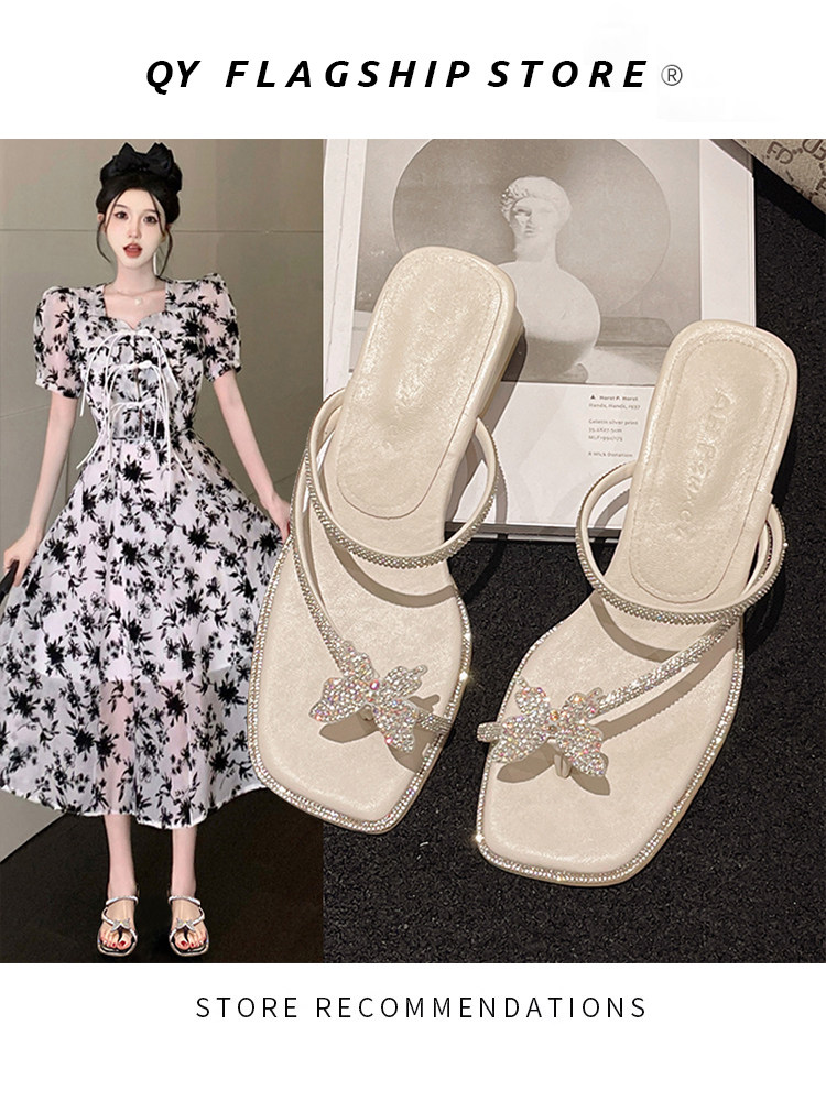Слайдеры с бантиком, тапочки, летняя обувь, высокие сандалии, французский ретро стиль