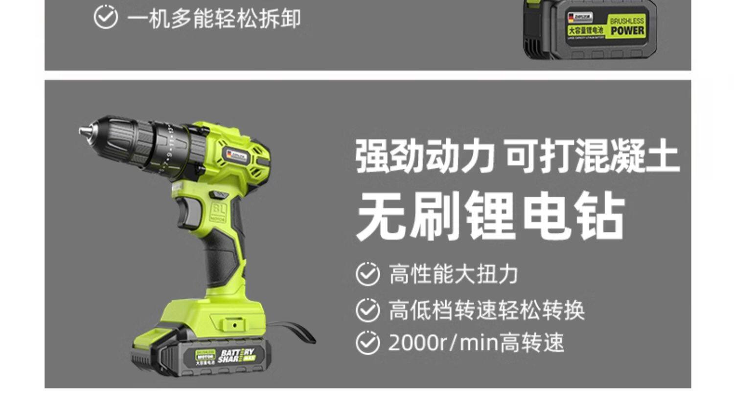 Бесколлекторные литиевые батарейки с зарядкой, промышленная универсальная электродрель, высокая мощность