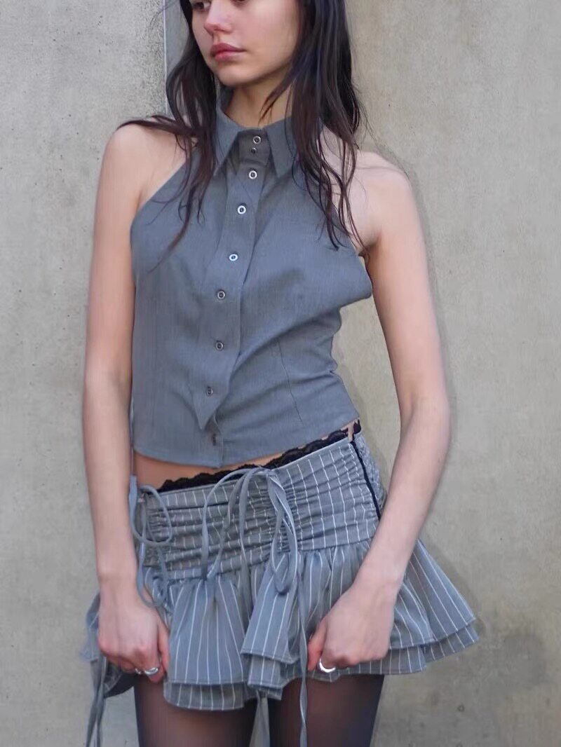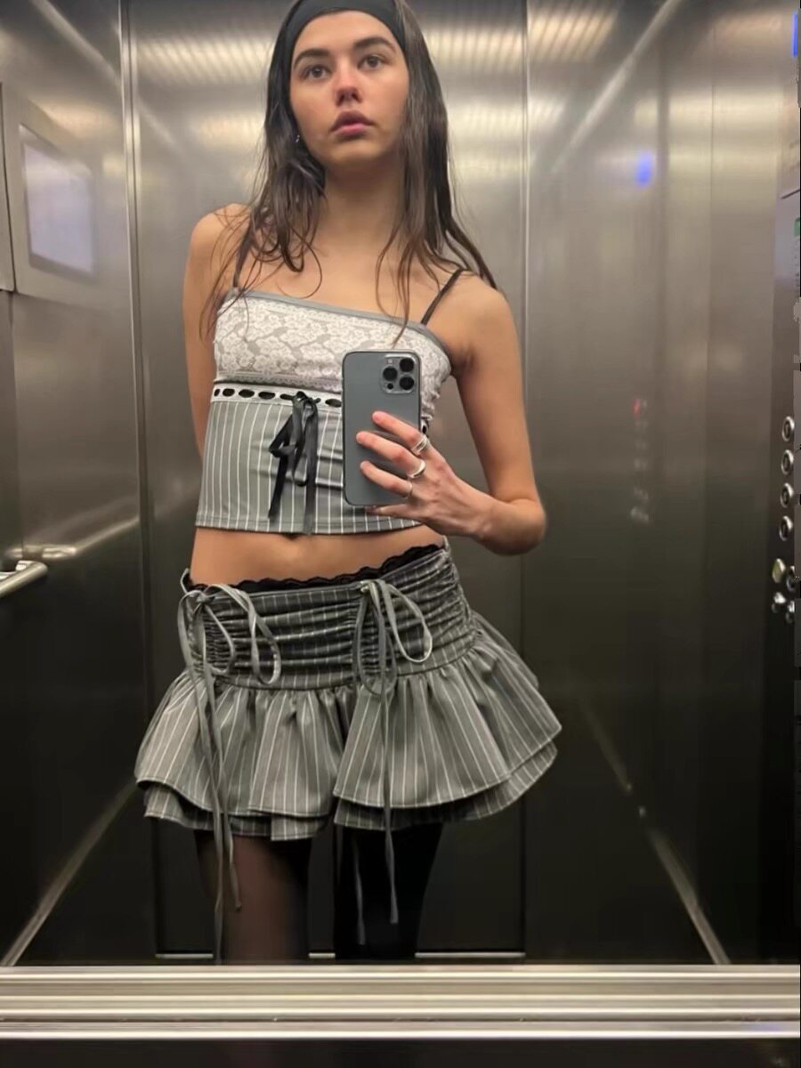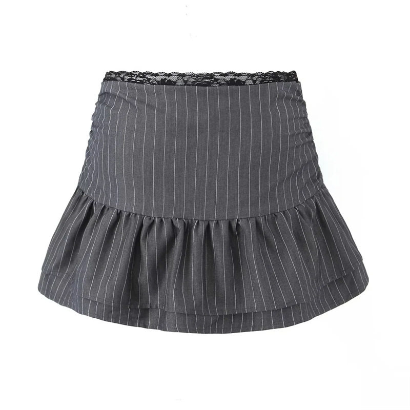 Серая кружевная полосатая юбка Jaded London, женская дизайнерская ниша, утягивающая юбка трапециевидной формы с оборками