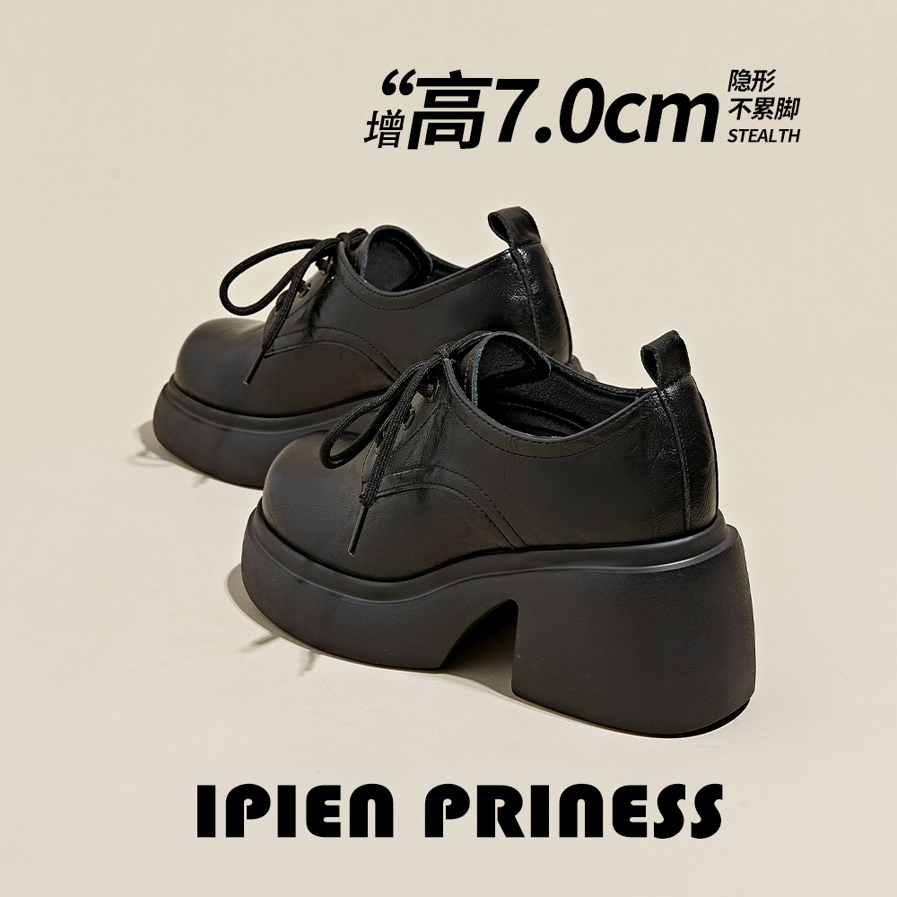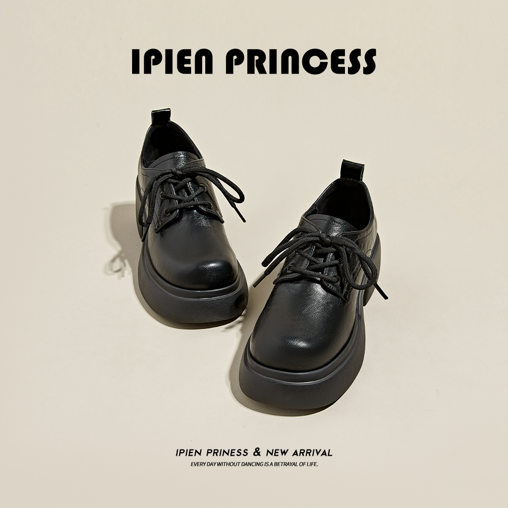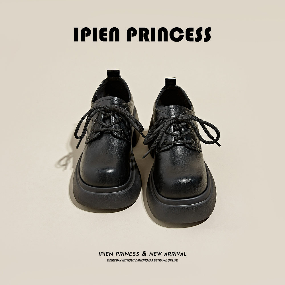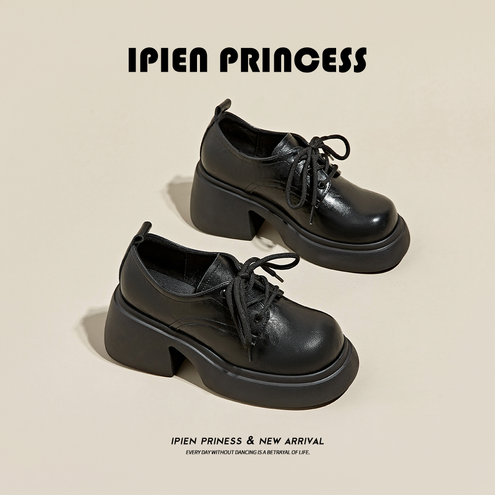 Черное толстое дно маленькие кожаные туфли женская 2024 весна и осень нового стиля