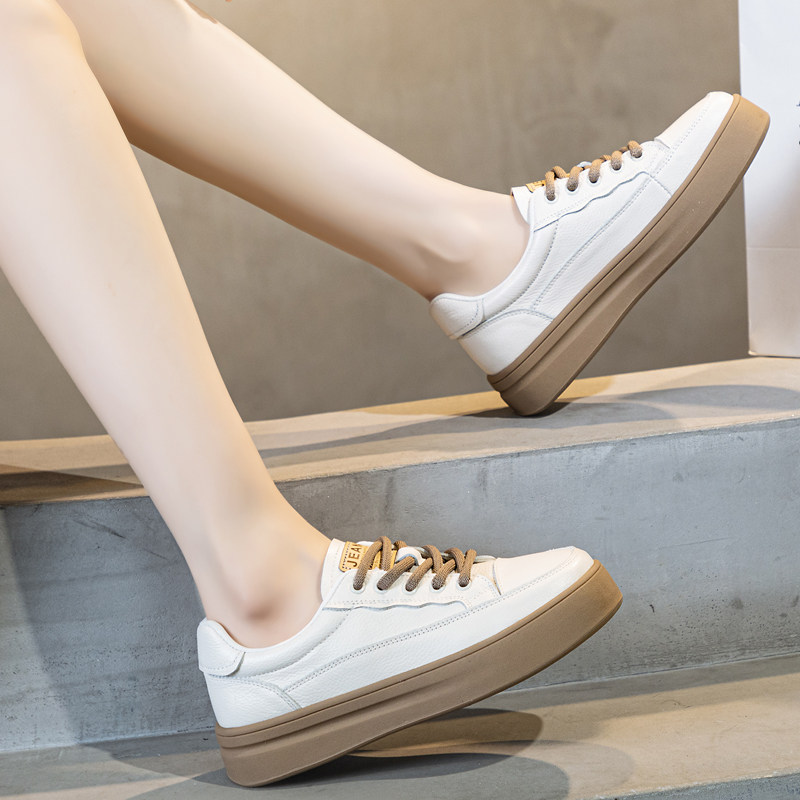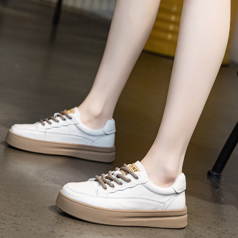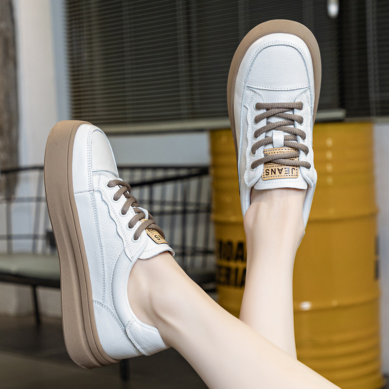 Белая обувь на платформе, спортивная обувь, дышащая универсальная повседневная обувь для кожаной обуви, из натуральной кожи