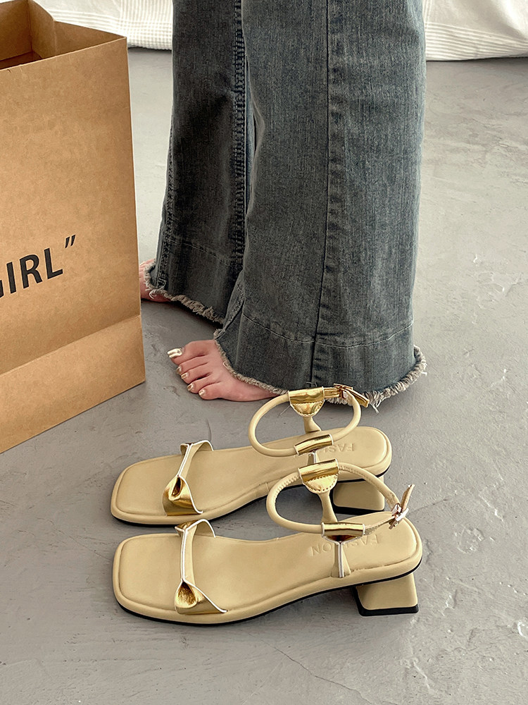 Подходит с юбкой, летние сандалии, универсальная обувь на высоком каблуке, французский стиль, изысканный стиль, яркий броский стиль