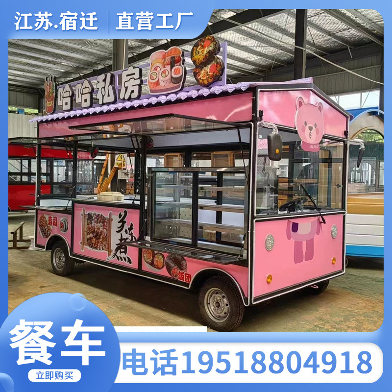 Универсальная закусочная тележка, электрический вагон-ресторан на четырех колесах для коммерческого использования, популярно в интернете