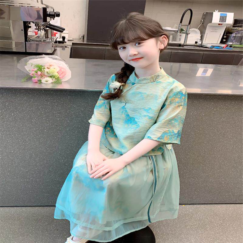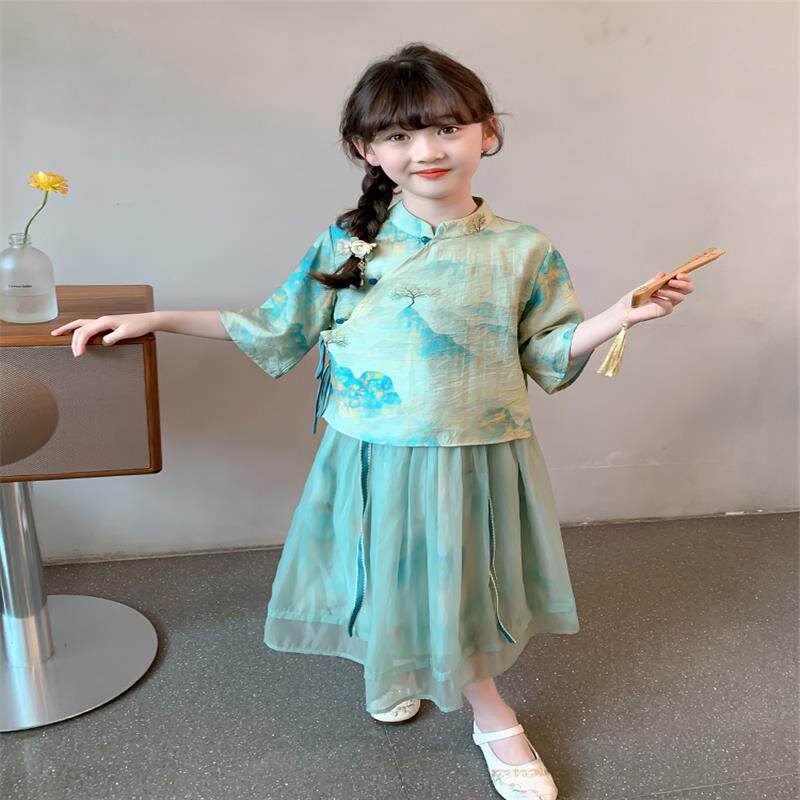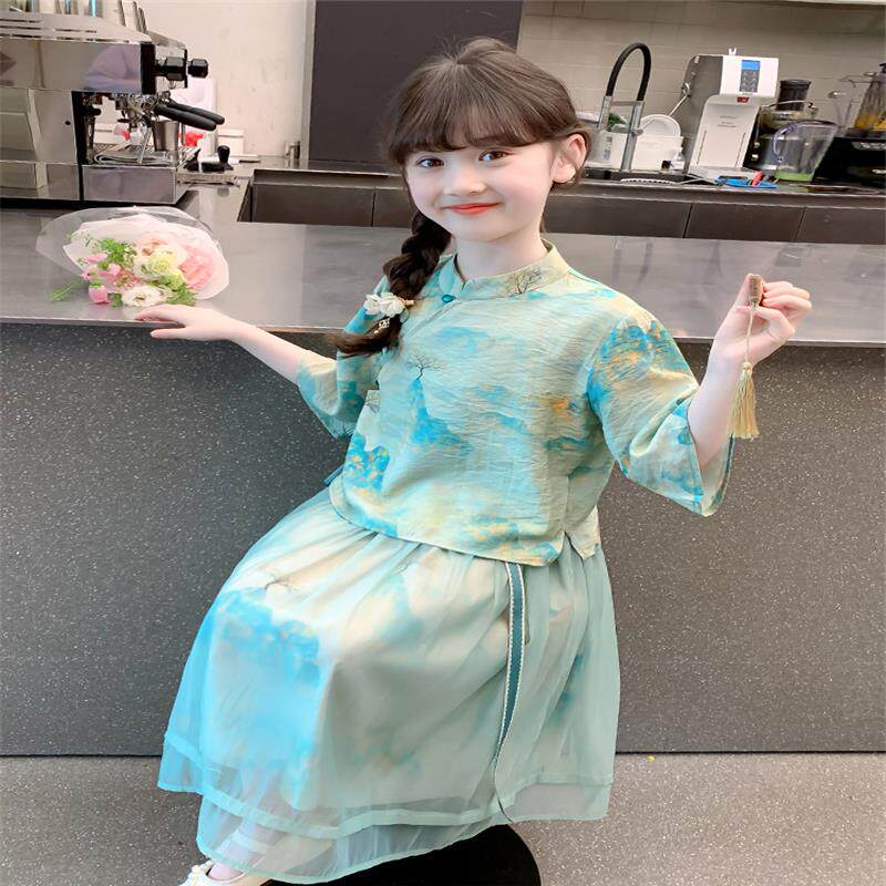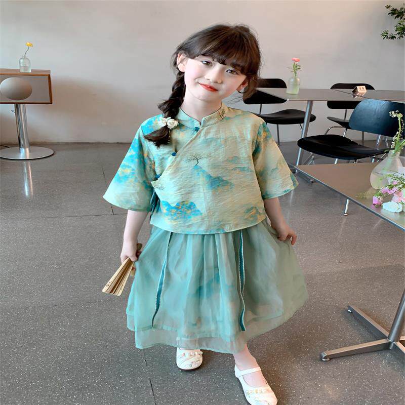 Ханьфу, летняя детская летняя одежда, летний комплект, китайский стиль, популярно в интернете