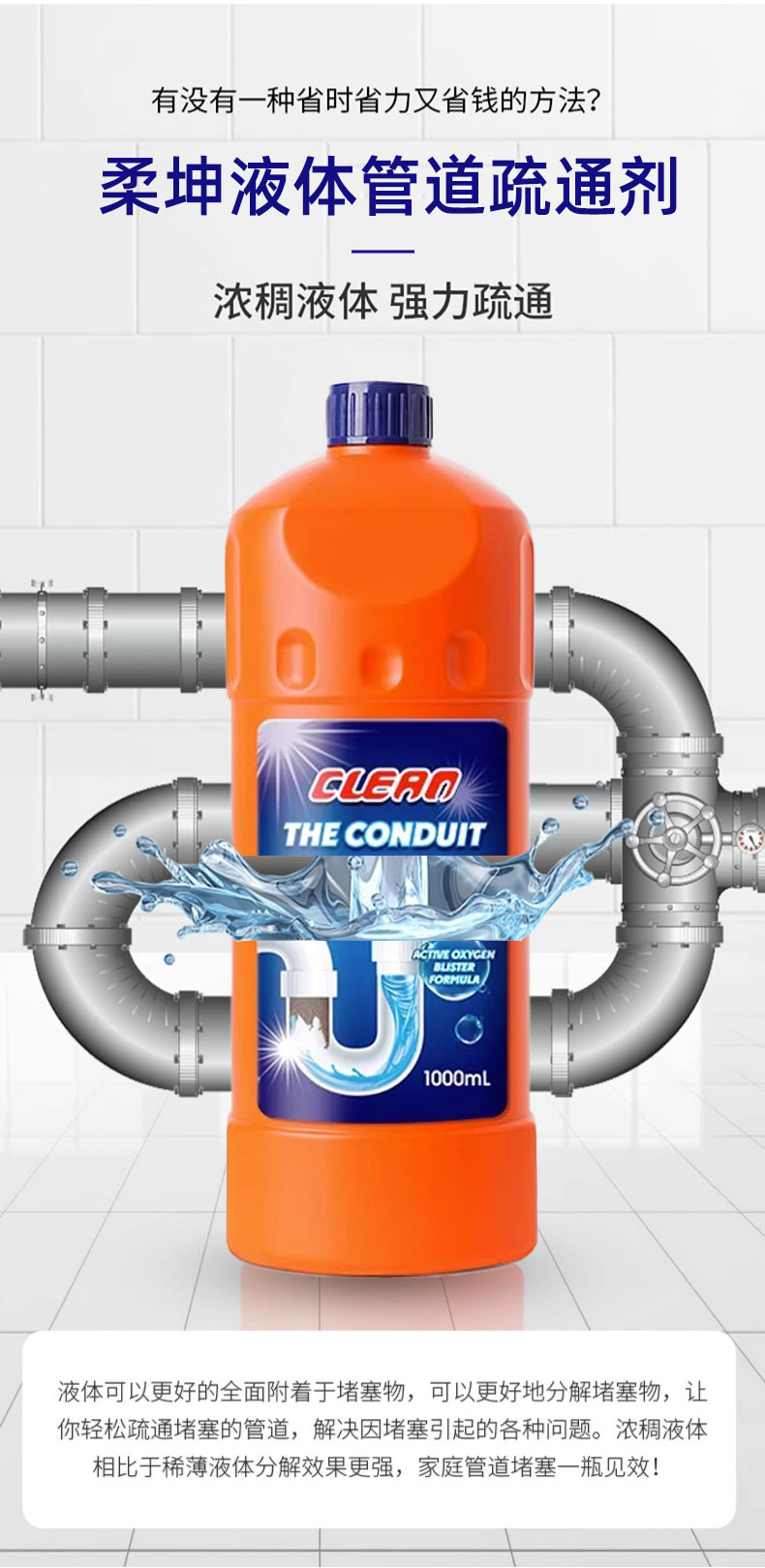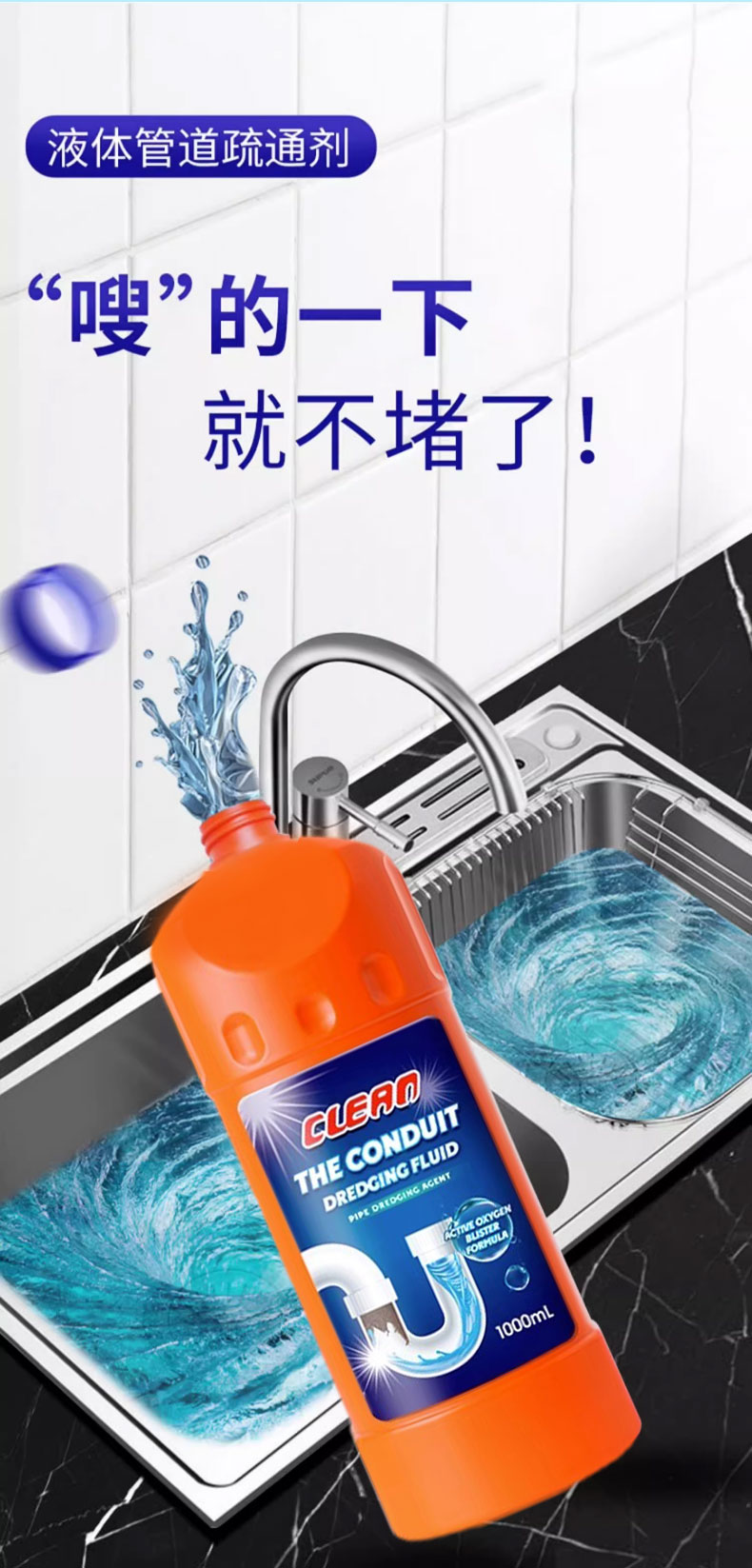 Трубопроводная дноуглубительная агент сильно растворен в туалетном туалетном туалетном туалете кухонная вода.