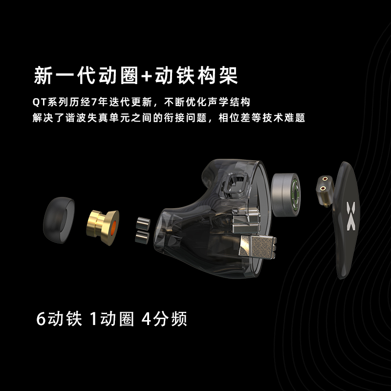Во время слабой воды песчаный QTX 1 Circle 6 Железный гибридный блок Hifi in -ear ear -цик