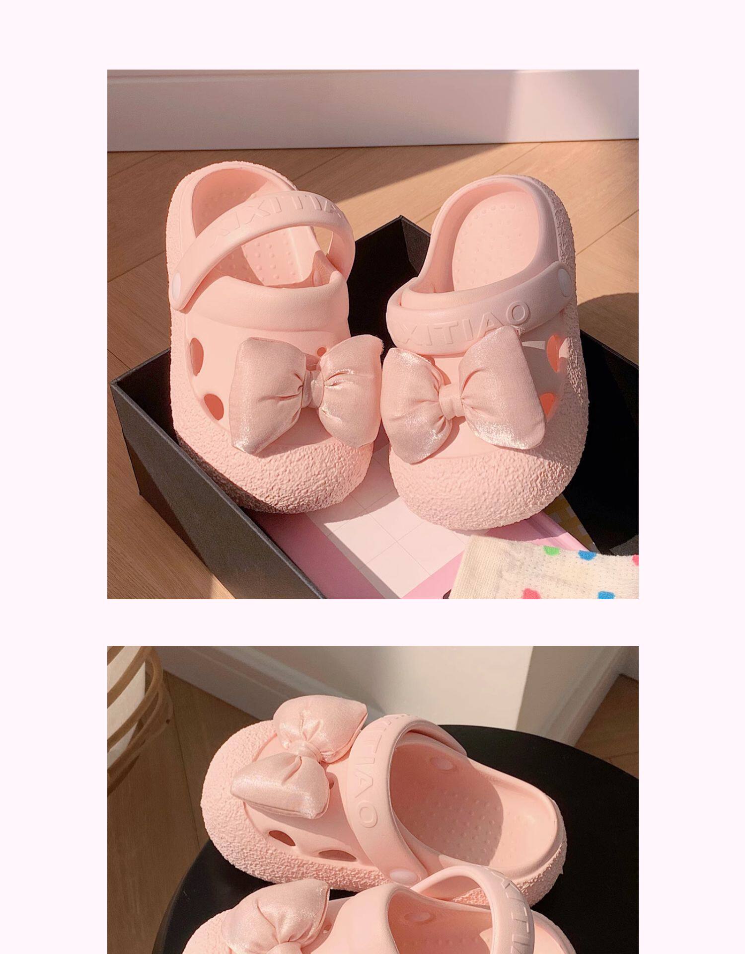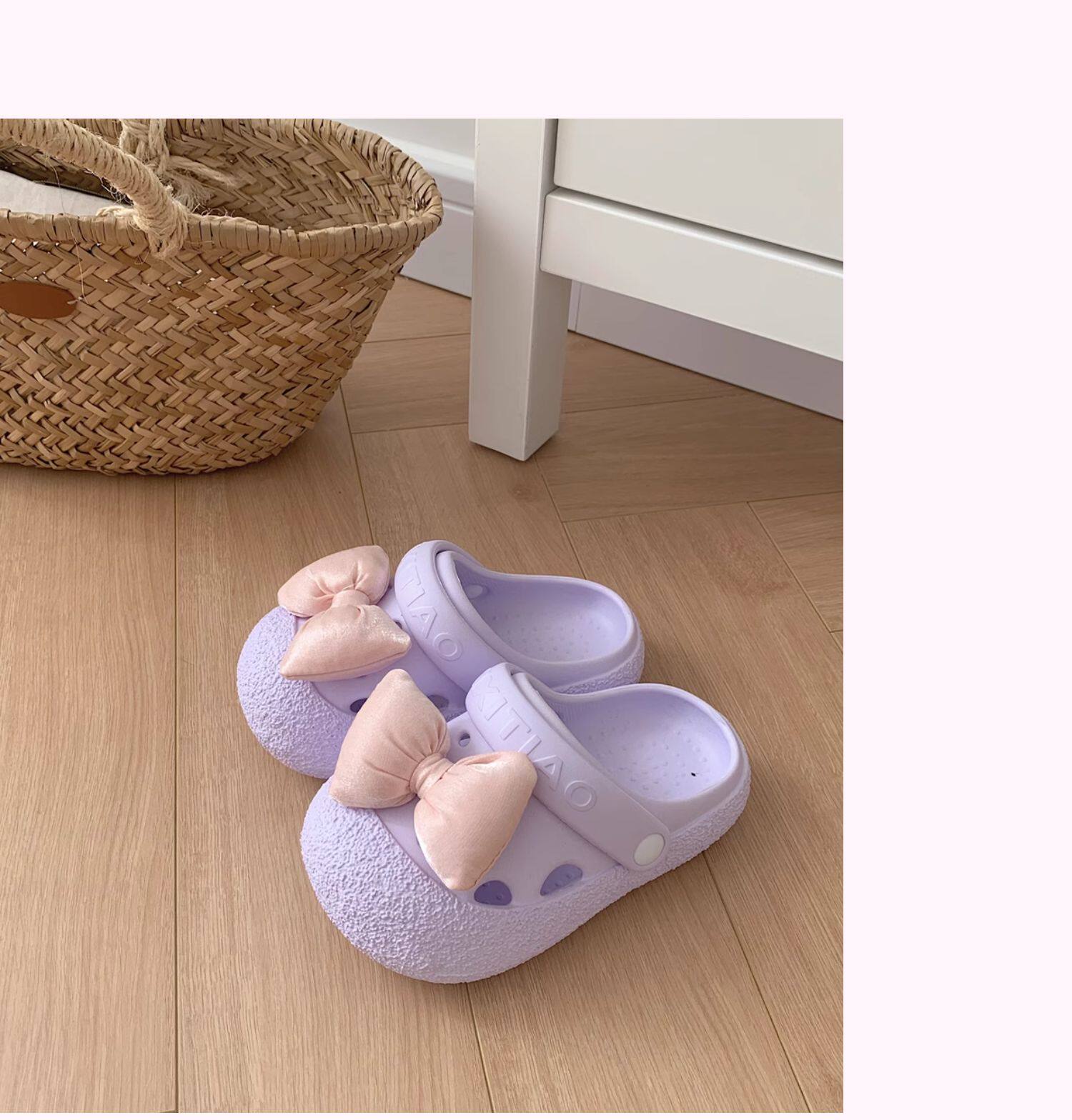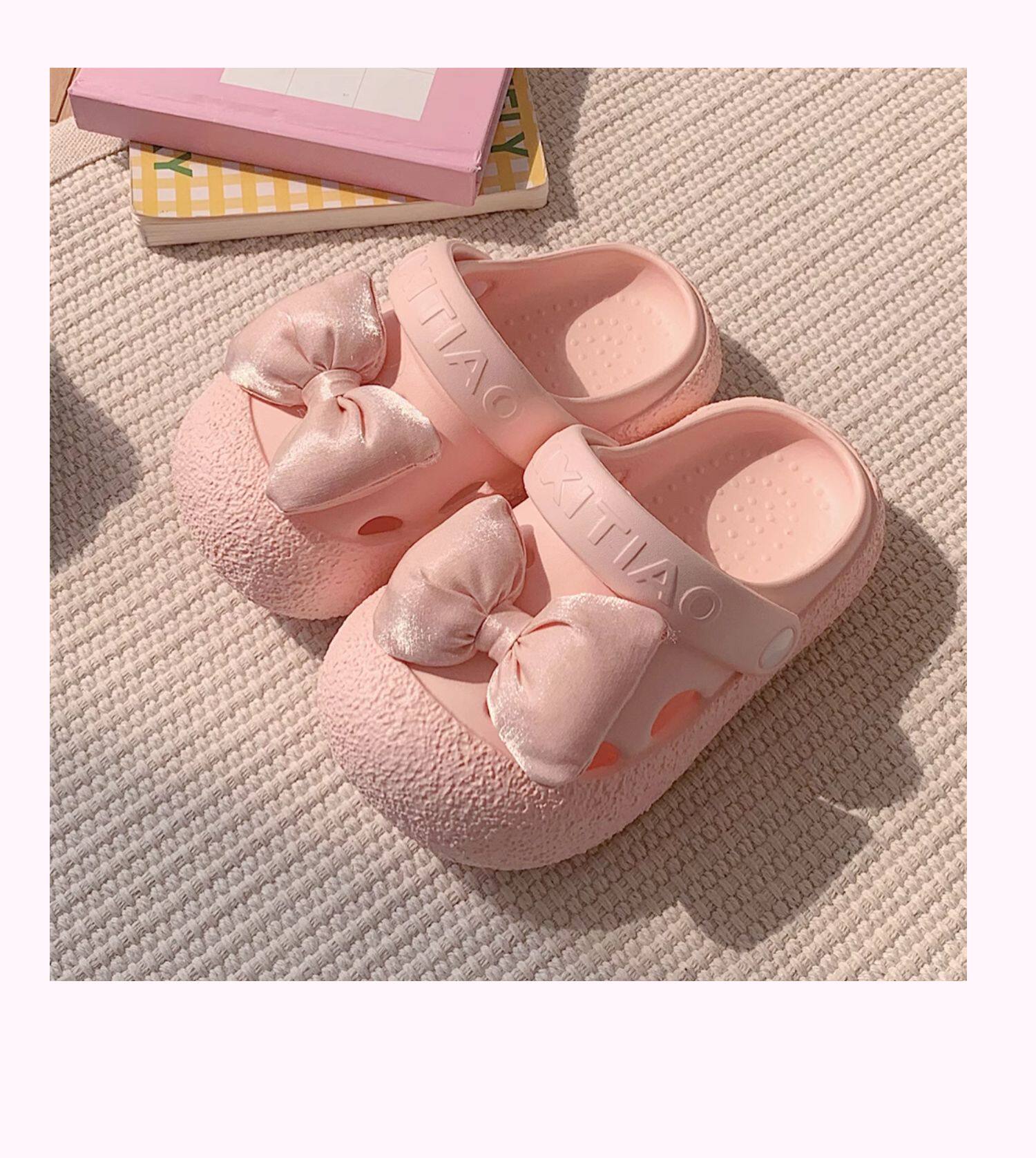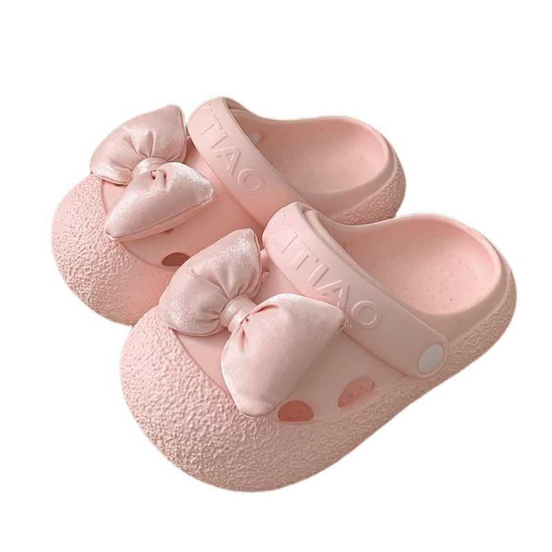 细细条 Розовые летние детские пляжные тапочки с бантиком