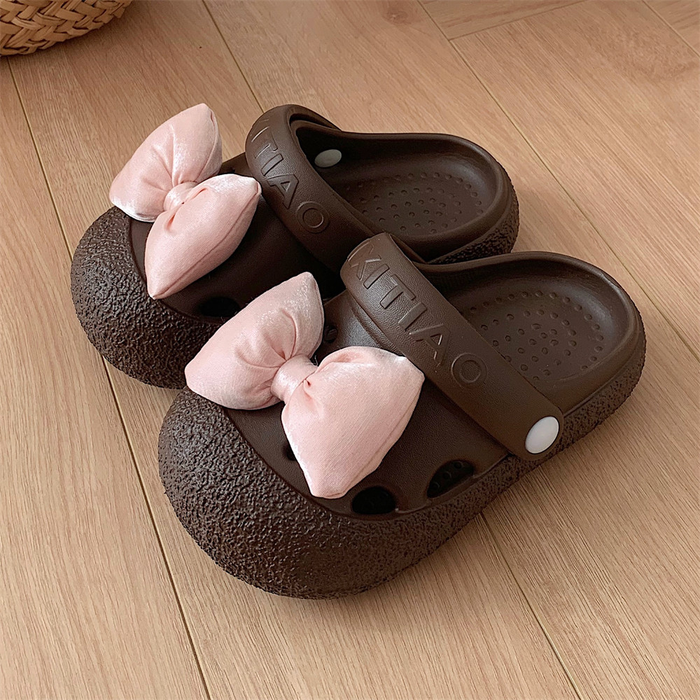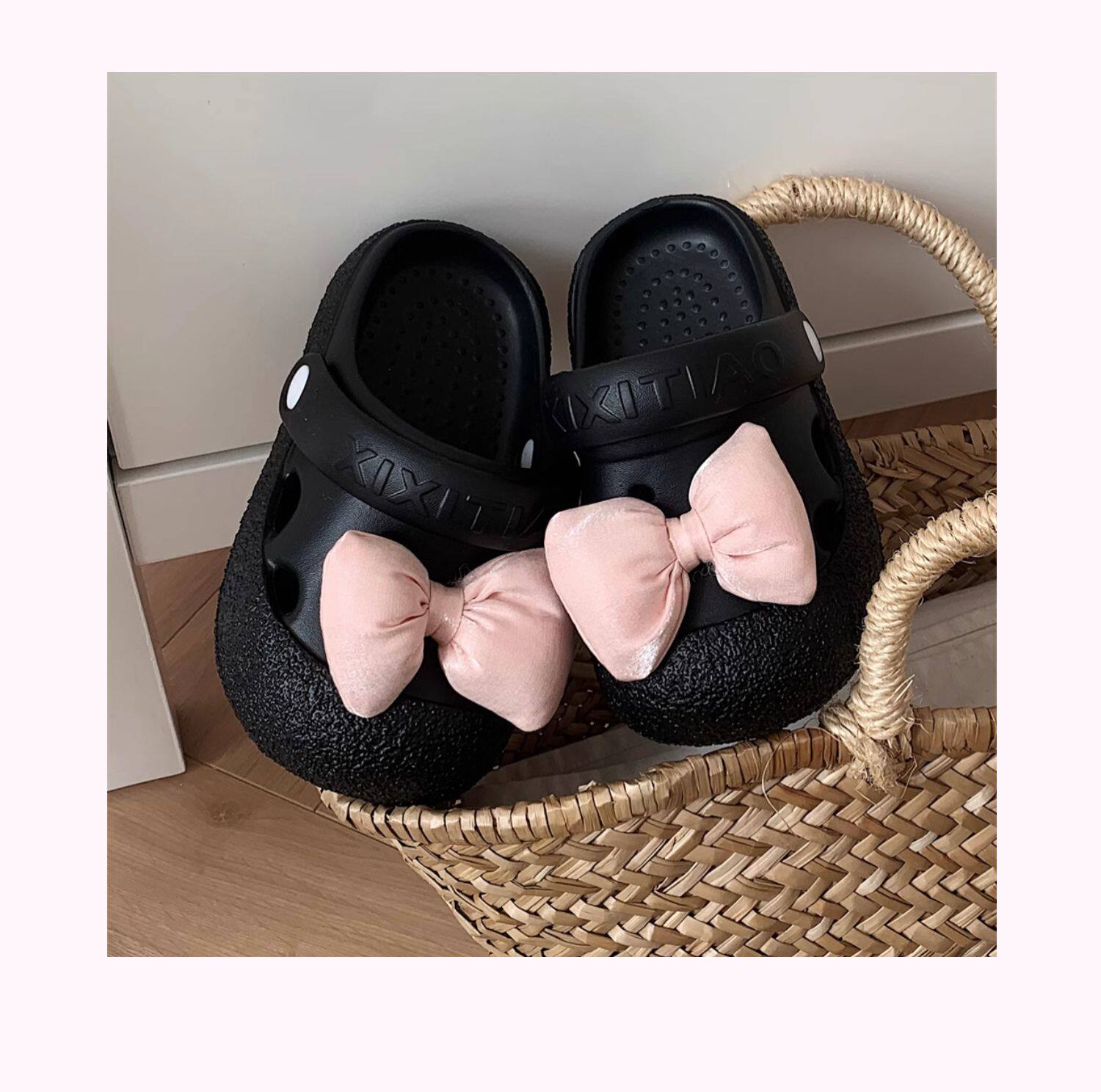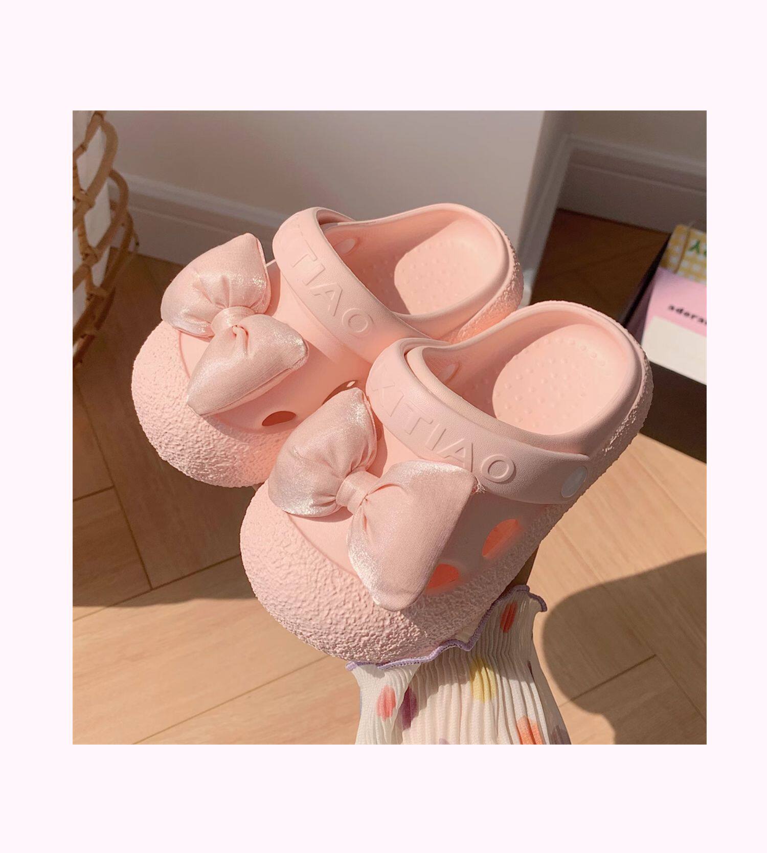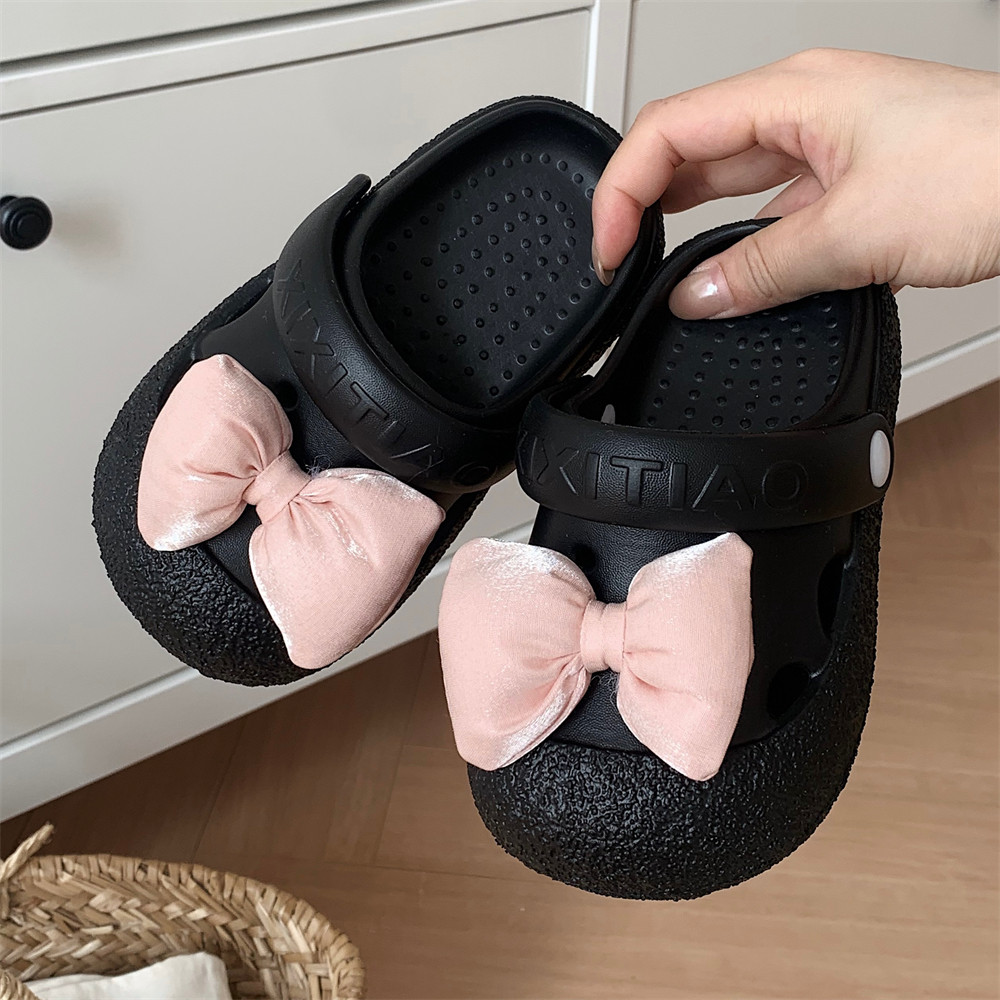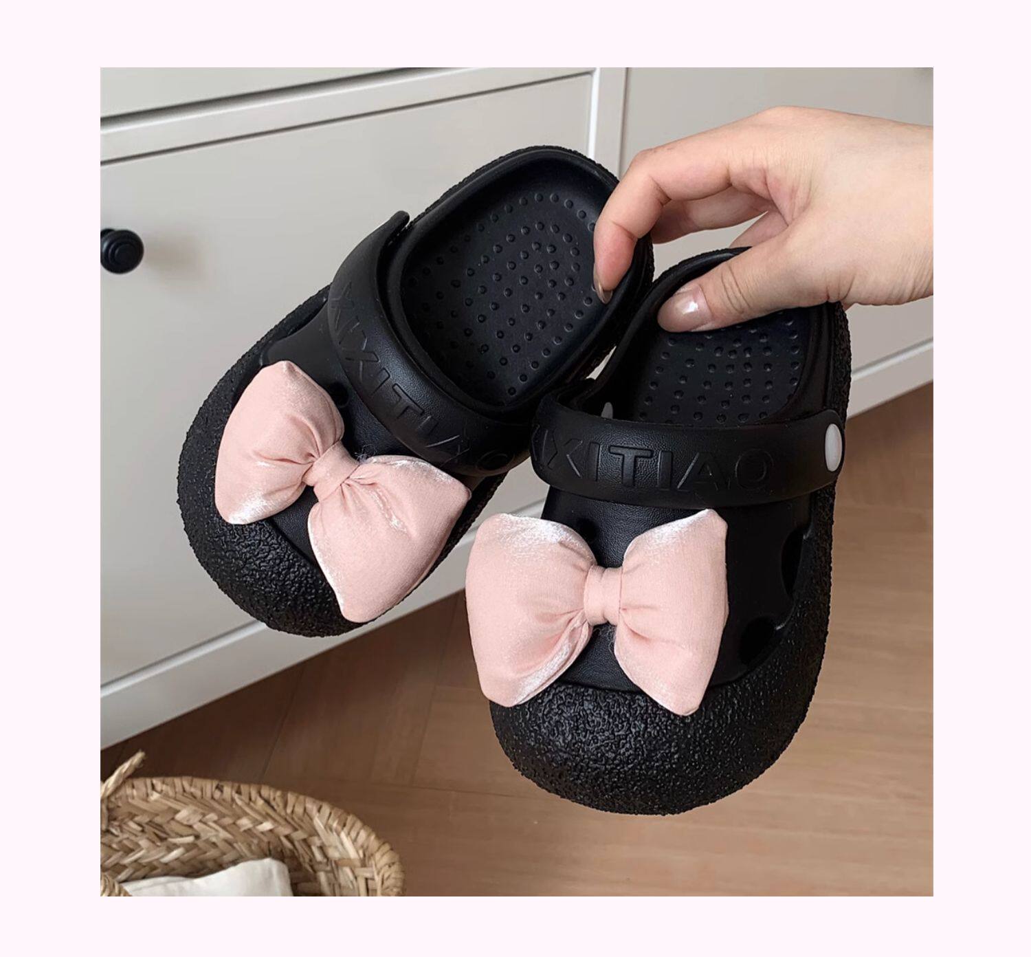 细细条 Розовые летние детские пляжные тапочки с бантиком