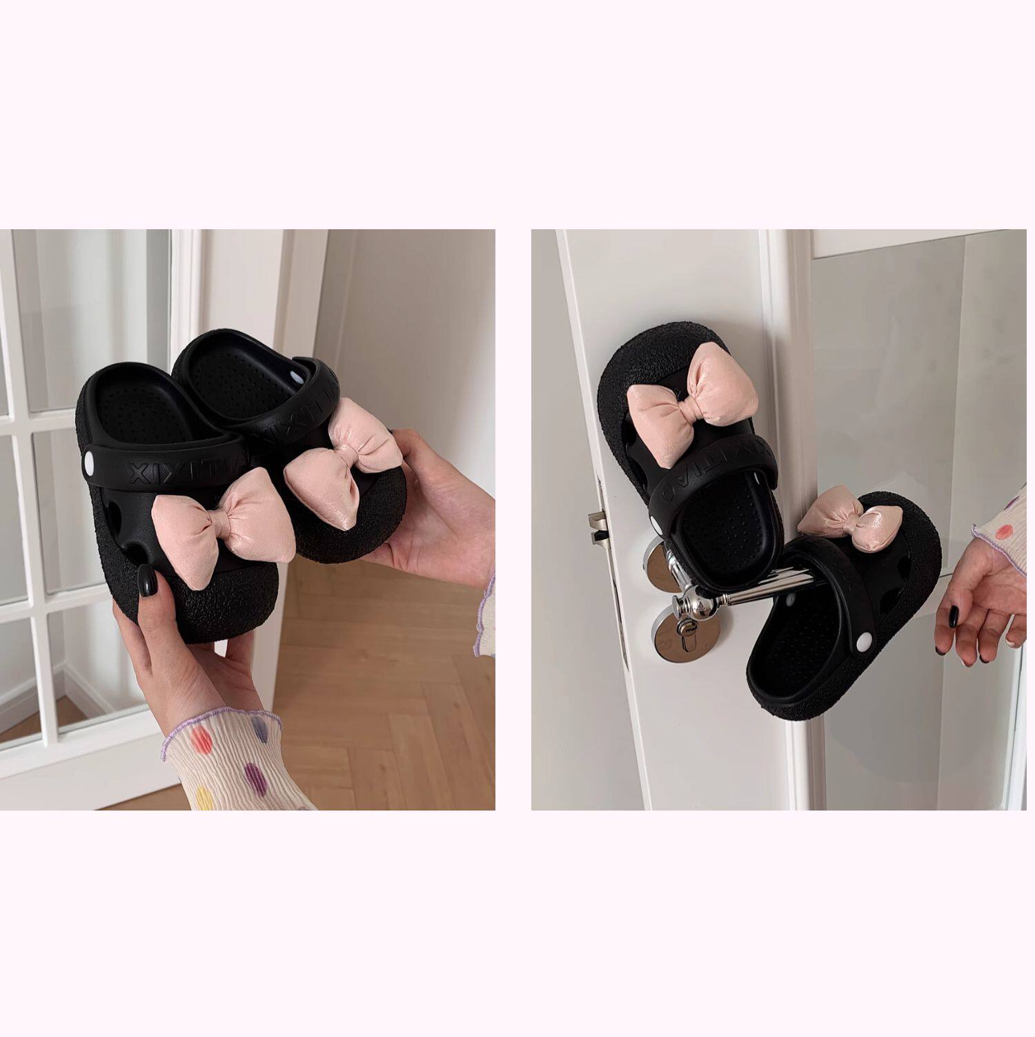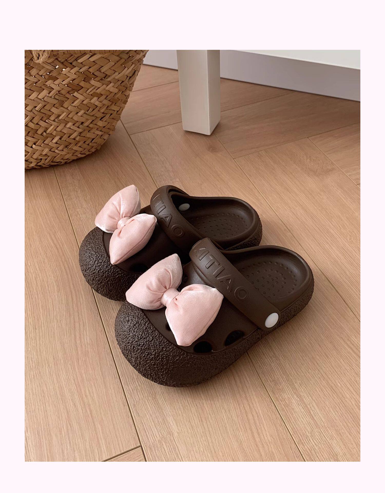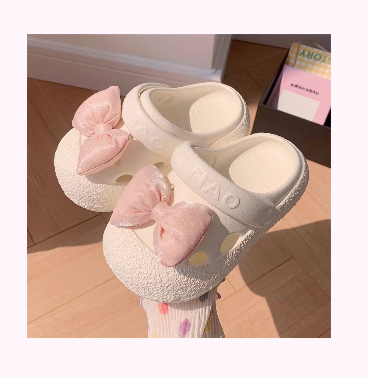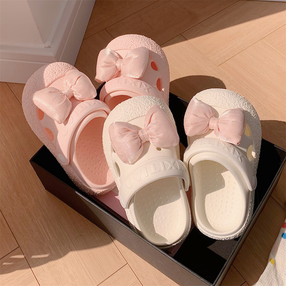 细细条 Розовые летние детские пляжные тапочки с бантиком