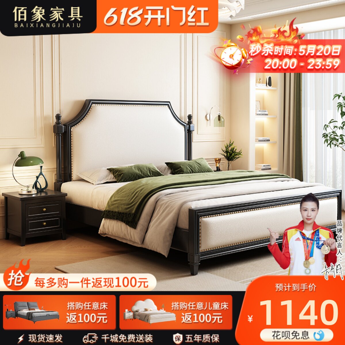 Huelyie/Gu Yi Light Luxury American Wood Bed 1,8M