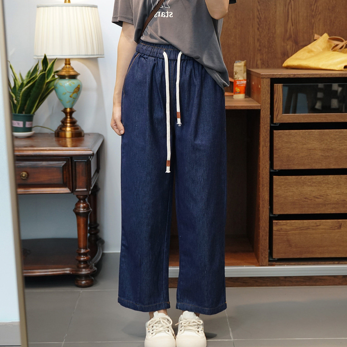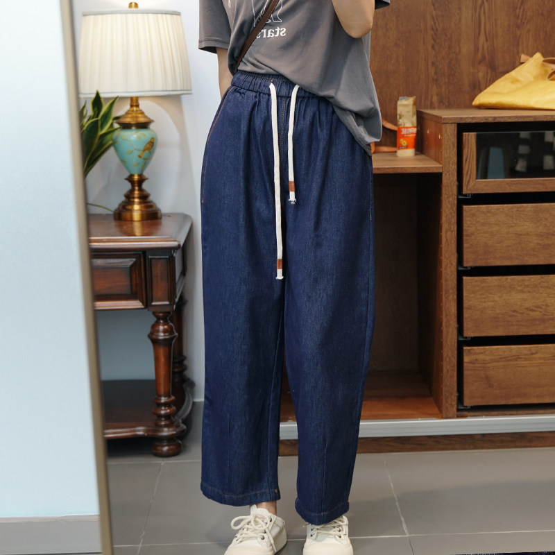 Джинсы, осенние мягкие штаны, большой размер, высокая талия, свободный прямой крой