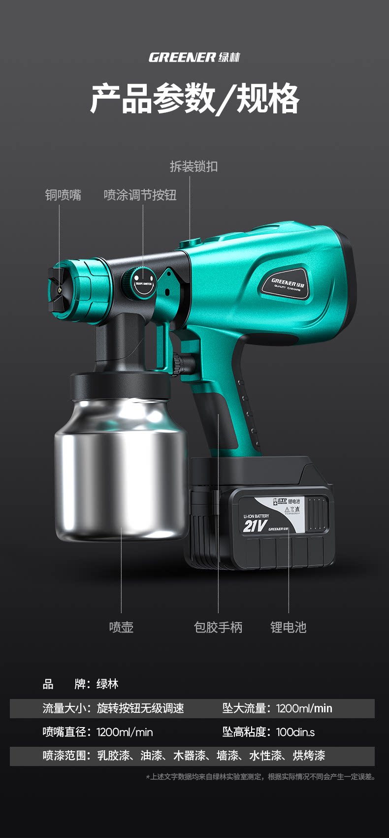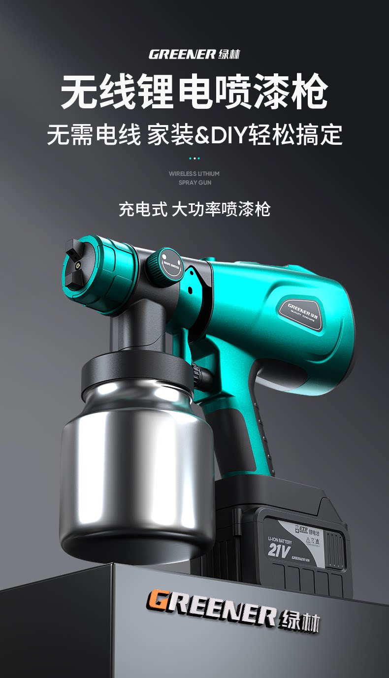 Пистолет-распылитель Green Forest Литиевая электрическая краска Аэрозольная краска Все латексные краски Специальная лейка Автомобиль Маленький литий-электрический пистолет-распылитель