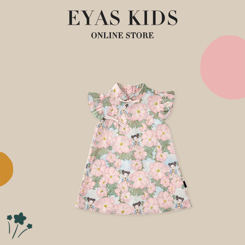 EYAS Летнее ципао, ханьфу, в западном стиле, цветочный принт