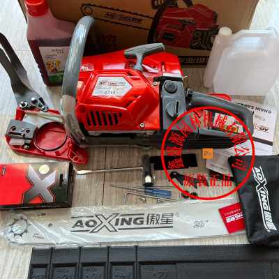 Завод продвигает мощную цепную пилу Aoxing 8210 мощностью 26 киловатт для лесозаготовок.