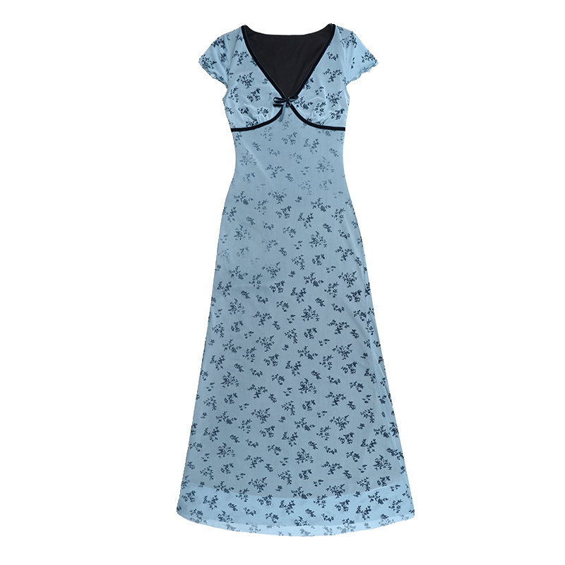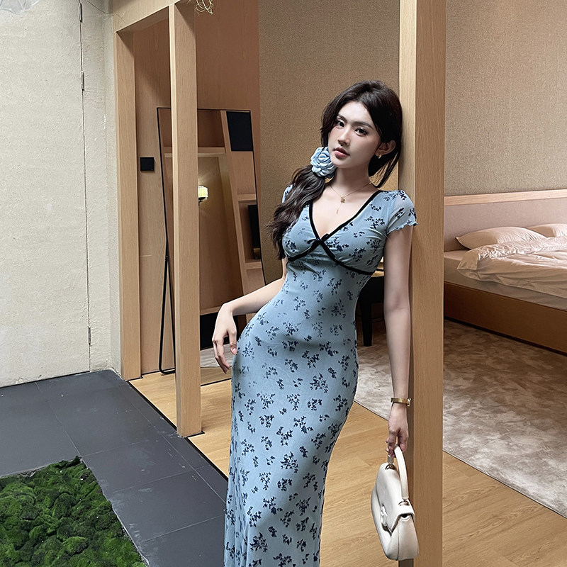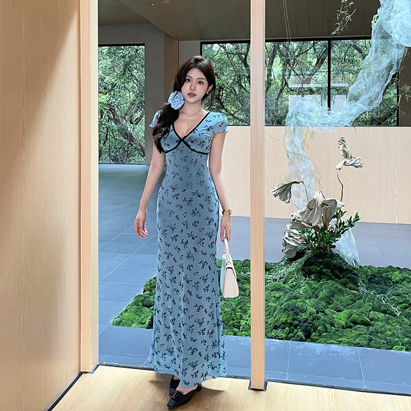 Синий элегантный приталенный корсет, модное платье, дизайнерская длинная юбка, цветочный принт, тренд сезона