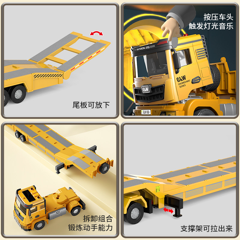 Детский металлический транспорт, игрушечная машина, комплект для мальчиков, грузовик, прицеп, экскаватор, 3 лет, подарок на день рождения