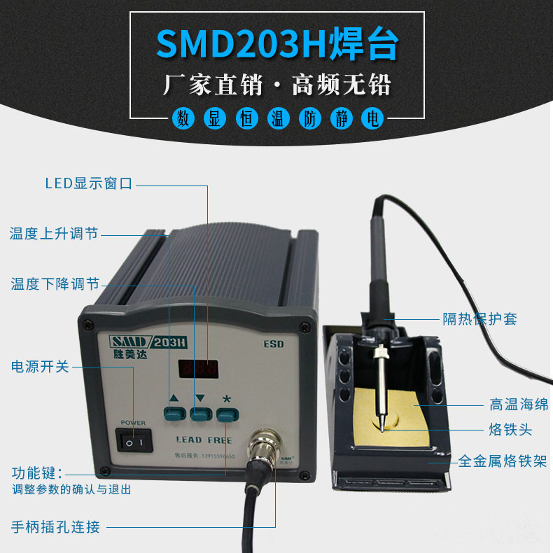 Электрический паяльник Sumida 203H, вихретоковая паяльная станция, высокочастотная паяльная станция с постоянной температурой, сварочный инструмент с регулируемой температурой и паяльным жалом 200