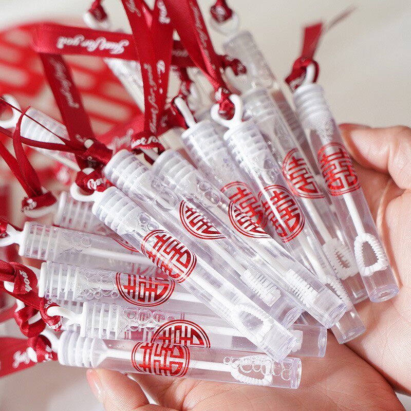 Свадебные фотографии Атмосфера хороших вещей подружки невесты, держащие счастливые персонажи, пузырьковые палочки, чтобы заблокировать игры, чтобы снимать свадебные принадлежности реквизита