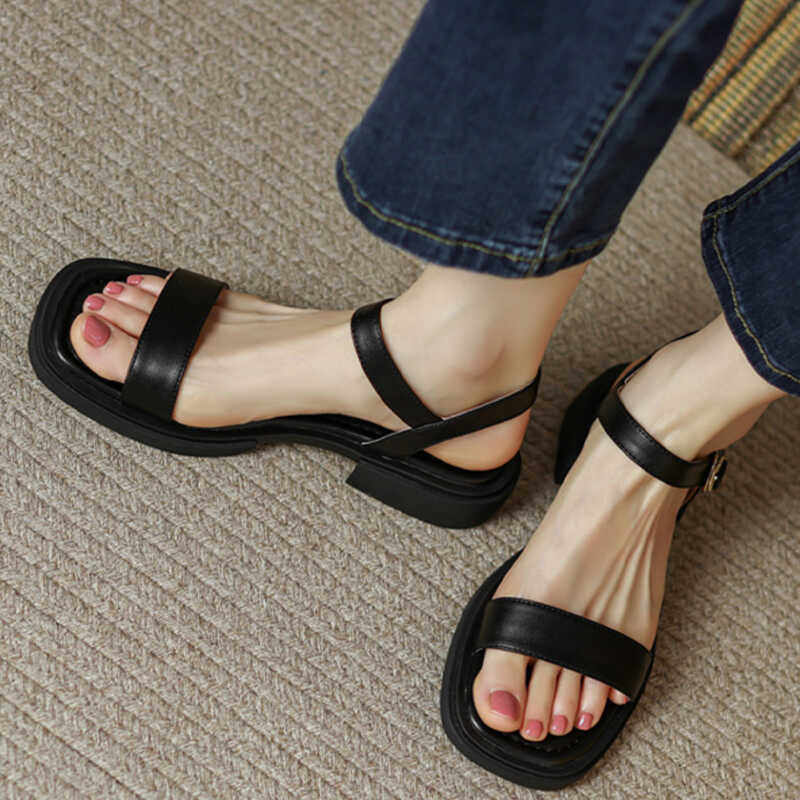 Сандалии, коричневая летняя универсальная обувь, 2024 года, из натуральной кожи