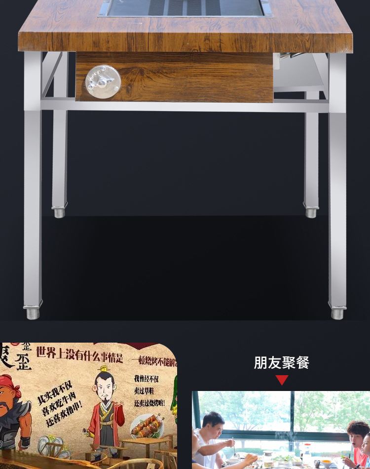 Дым -Бесплатный столик для барбекю коммерческий шведский стол из нержавеющей стали.
