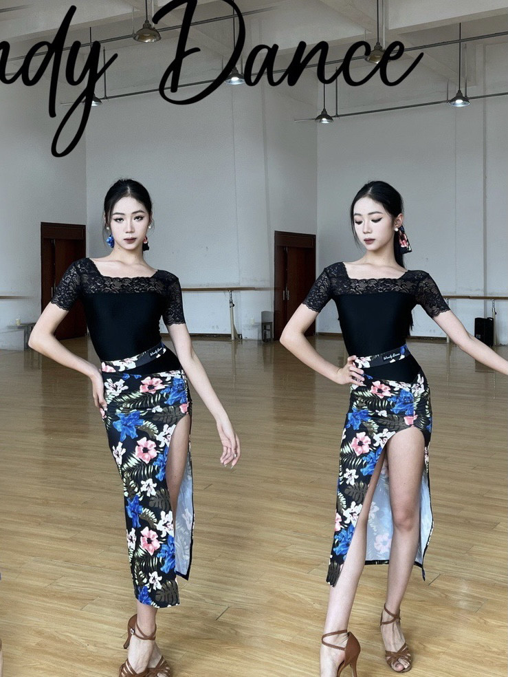 Wendy Одежда для латинских танцев с ограниченным принтом, длинная юбка с полым разрезом, художественная тренировочная одежда для экзамена для женщин