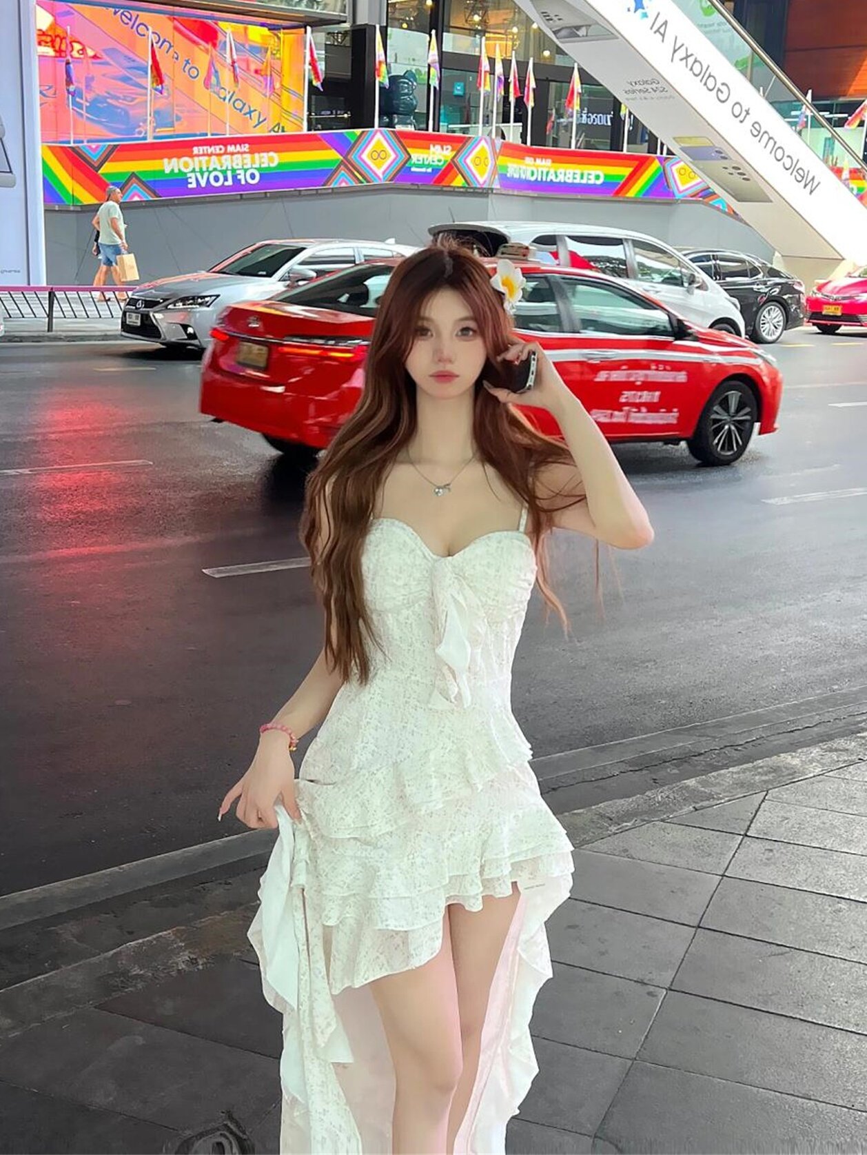 ITT7 Оригинальный Smart Light Shadow Shade Destural Layer Lotus Leaf Edge Fairy Long Юбка Camisole платье
