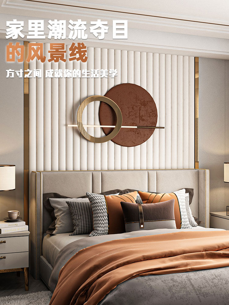 Жесткая сумка спальня фоновая стена кровати современная легкая роскошная цилиндрическая простая металлическая полоса мягкая сумка главная кровать головка кровати