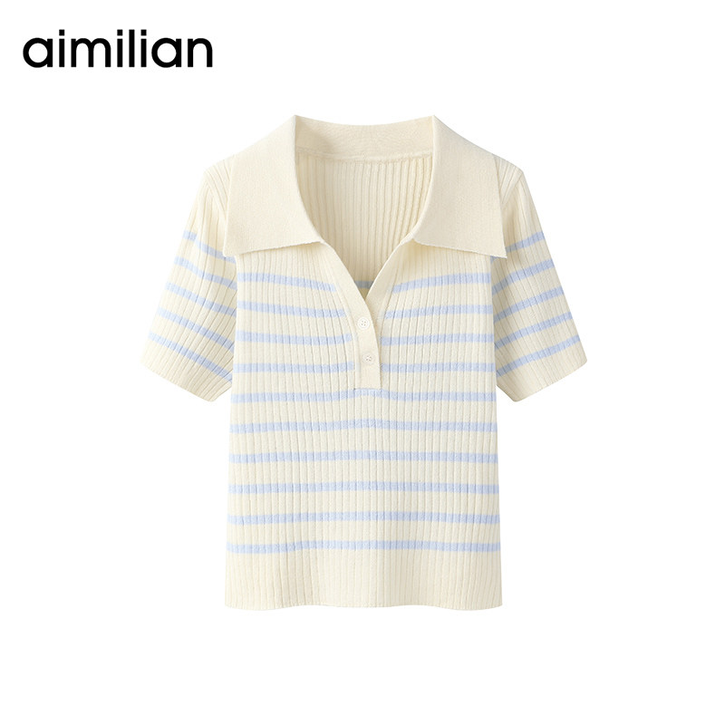 艾米恋 Трикотажная футболка polo, летняя базовая приятная телу розовая короткая футболка с коротким рукавом, по фигуре, облегающий крой