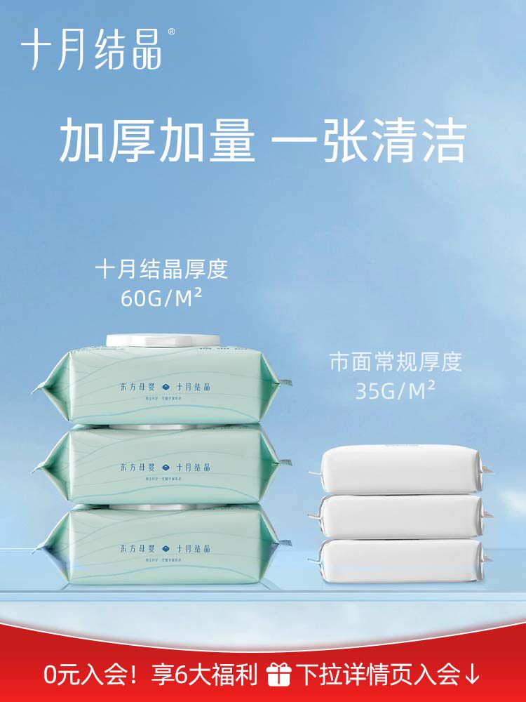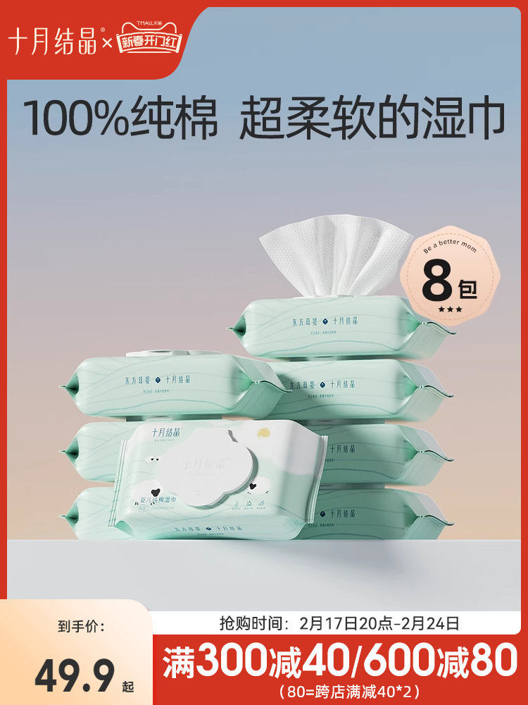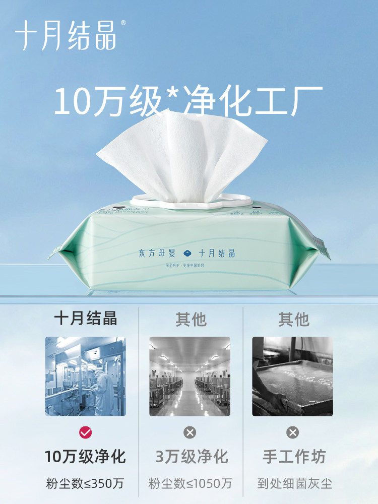 十月结晶 Хлопковые детские влажные салфетки для умывания для новорожденных, увеличенная толщина
