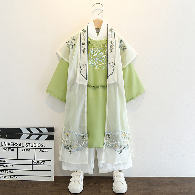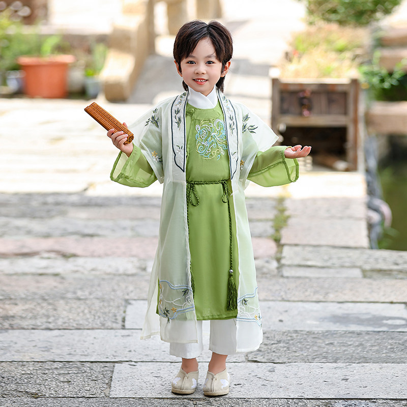 Ханьфу, длинный костюм мальчика цветочника, детский плащ для мальчиков, комплект, китайский стиль