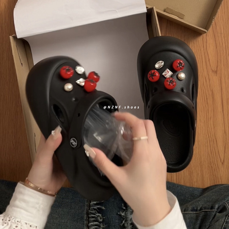 Черная милая летняя обувь на платформе, нескользящие тапочки, популярно в интернете