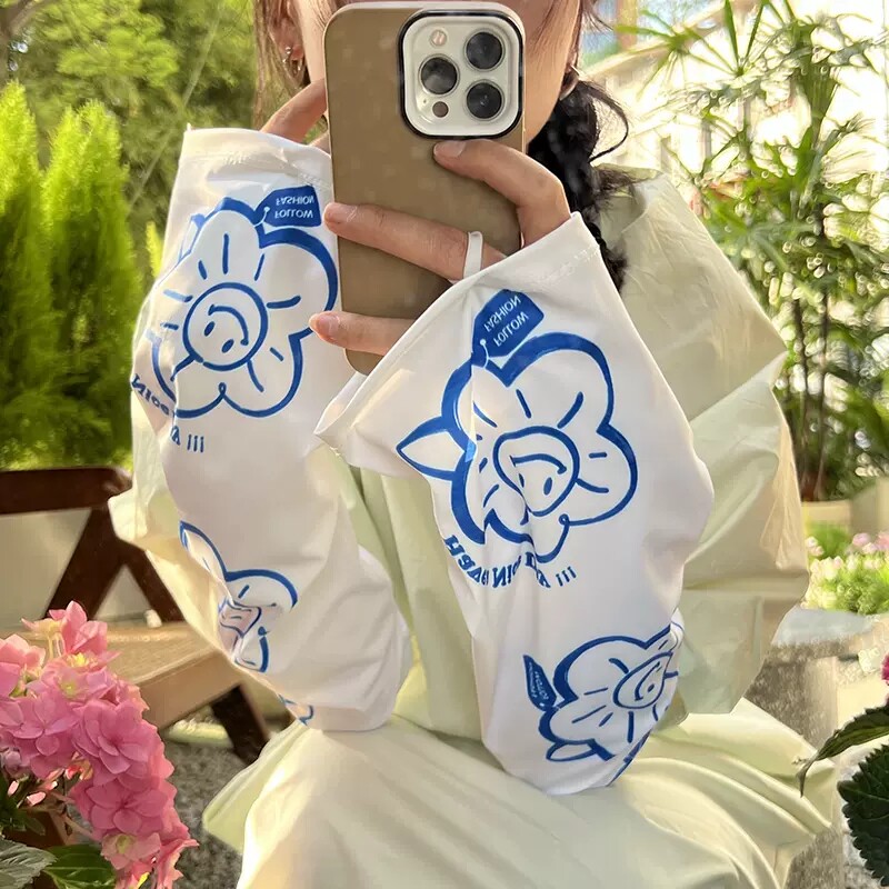 Летний шелковый мегафон на солнечной энергии, защитный рукав, нарукавники, тонкий комплект, ультрафиолетовый крем для рук, перчатки, подсолнух, защита от солнца, свободный крой, УФ-защита