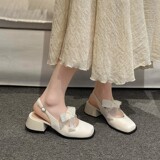 Весенние сандалии, ретро высокая подходит с юбкой, лента, французский стиль