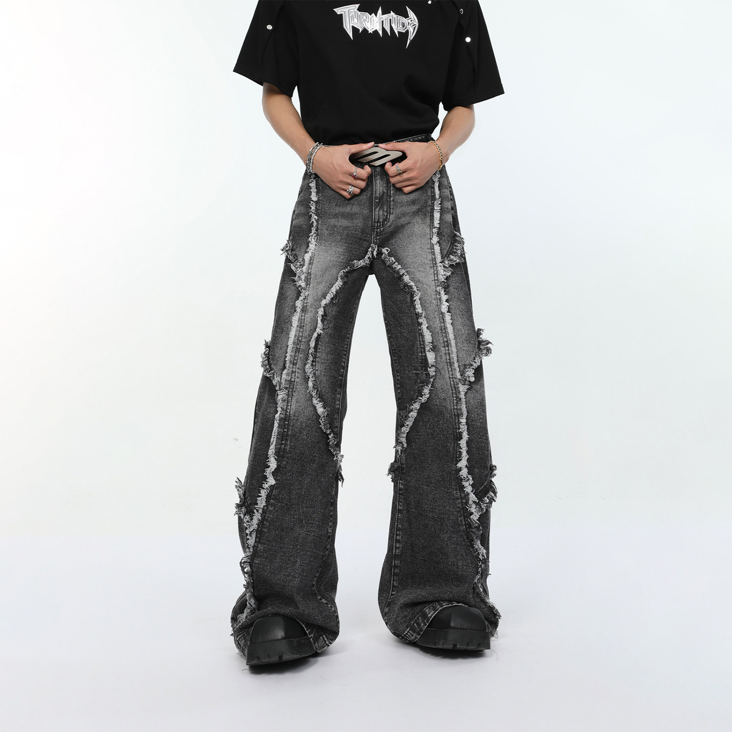 Тенденция ниши с поворотом деконструкции воды для мытья воды Su Mao Bian Design Jeans High Street красивые прямые брюки