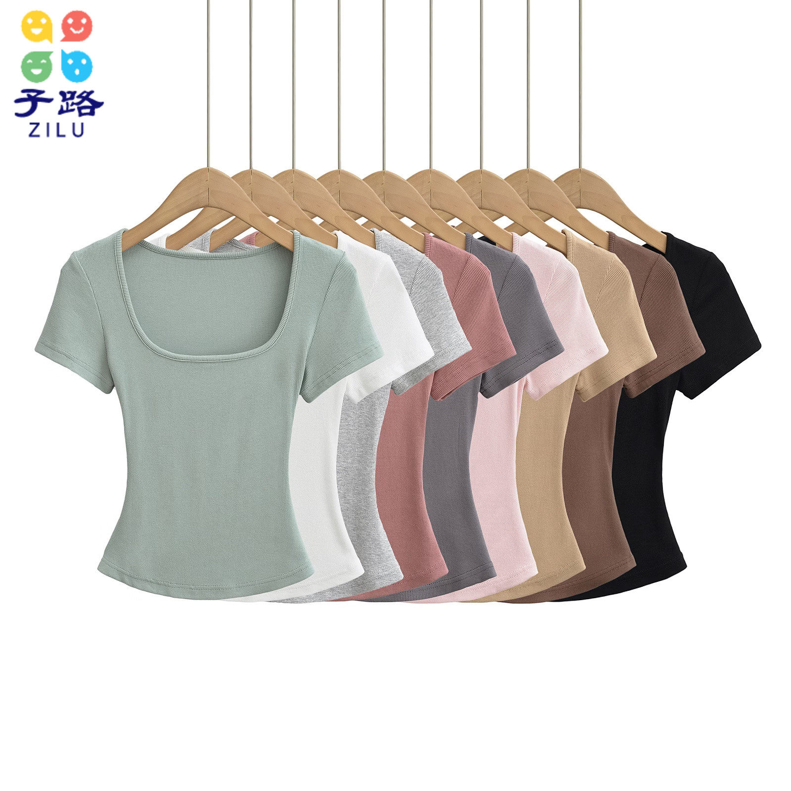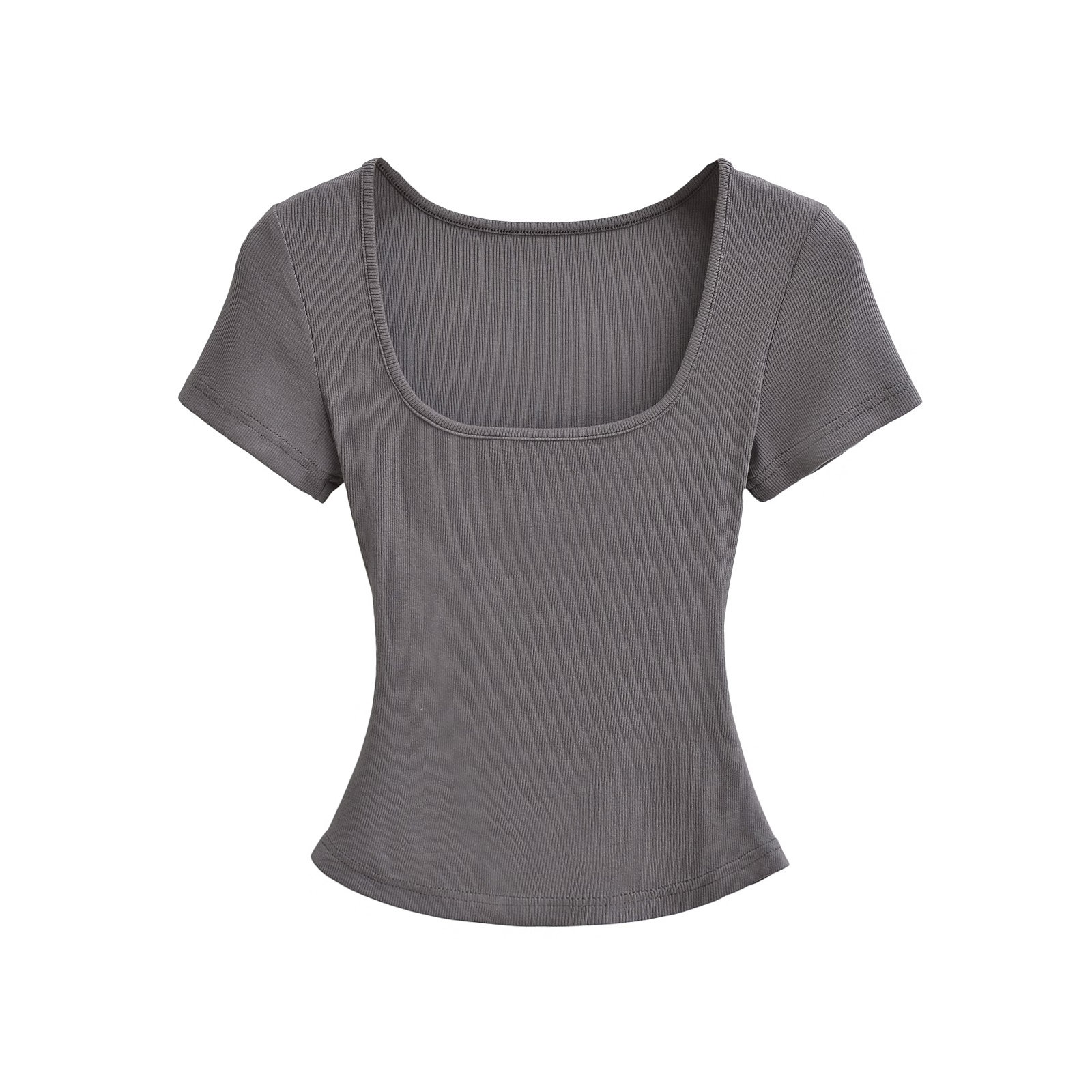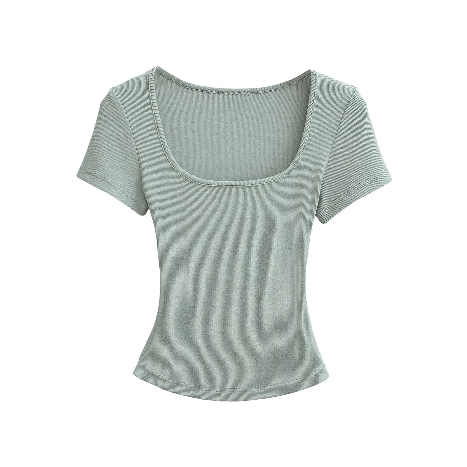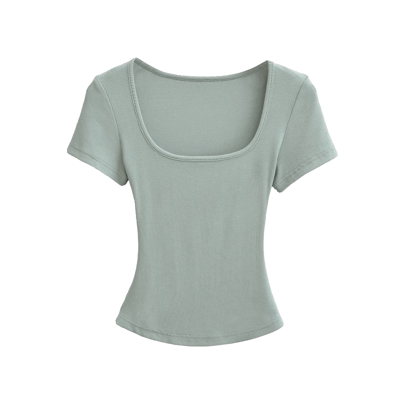 Базовая приталенная футболка с коротким рукавом, короткий корсет, европейский стиль, квадратный вырез