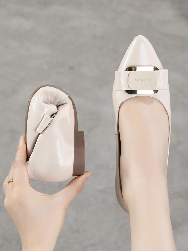 Обувь с заостренным носом, летняя плоская подошва подходит с юбкой для кожаной обуви, из натуральной кожи, мягкая подошва, против усталых ног