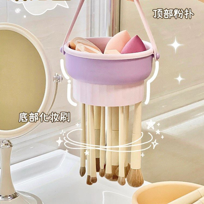 Кисть, косметическая губка, гигиенический спонж, силиконовая сушилка, коробка для хранения, «три в одном»