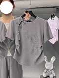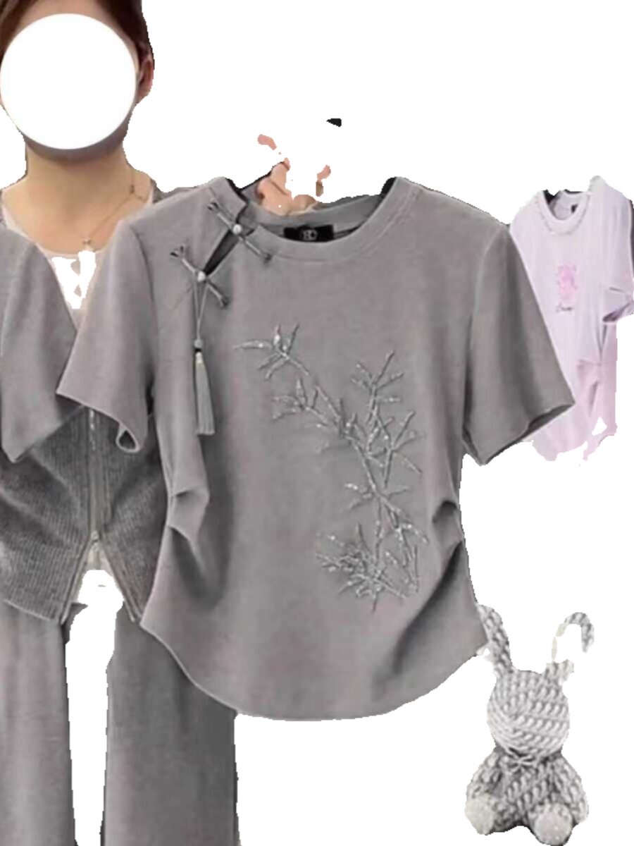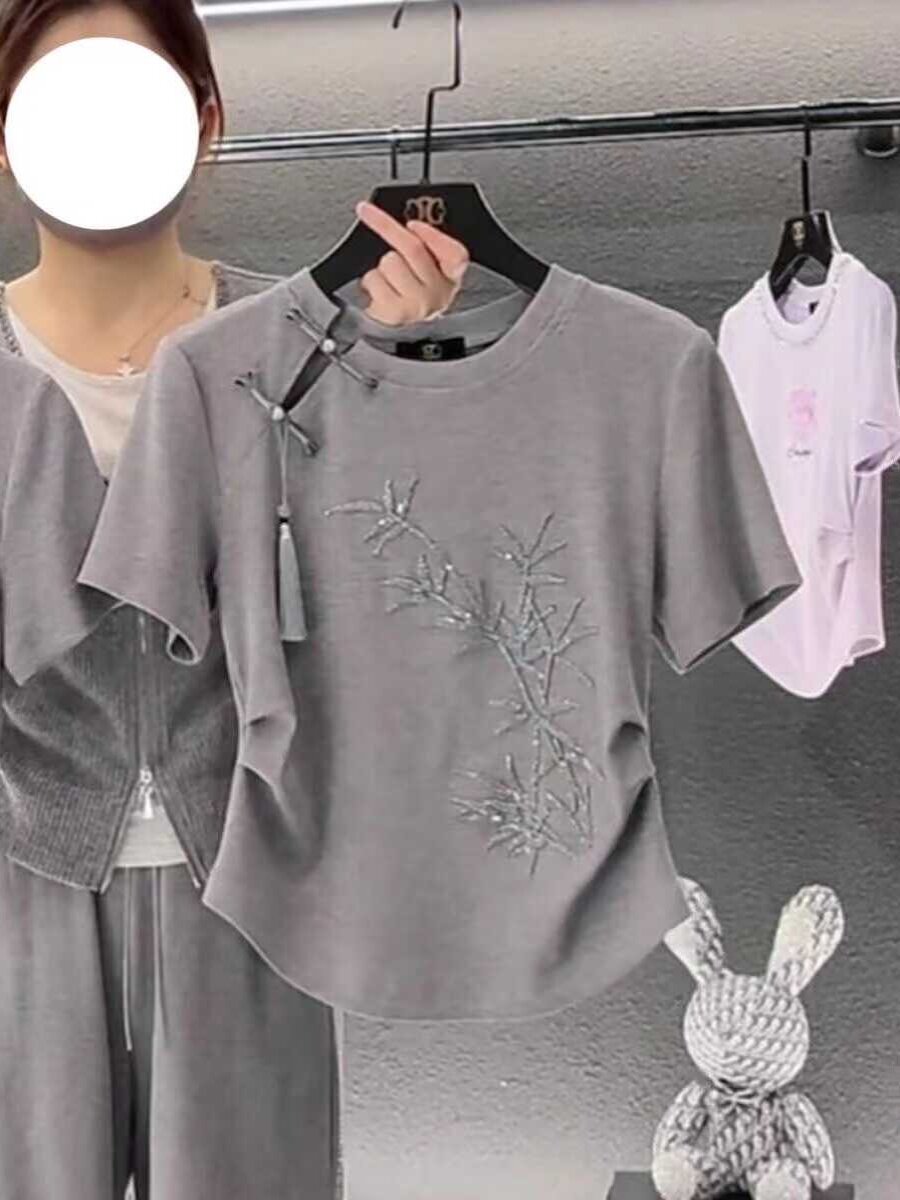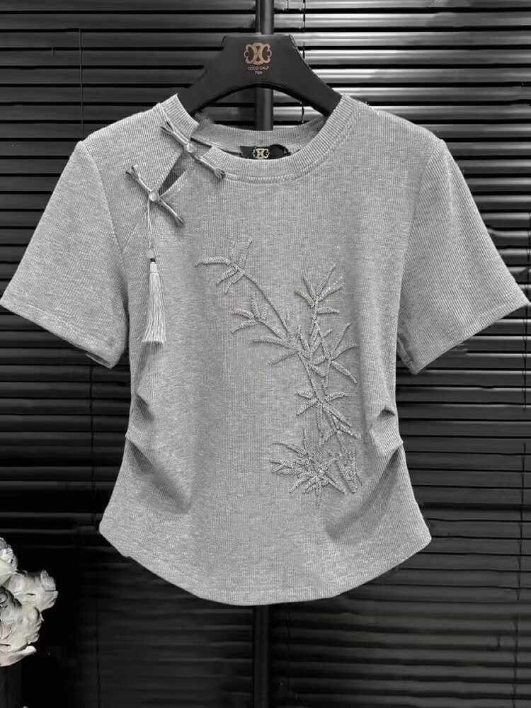 Футболка, приталенный короткий хлопковый корсет, китайский стиль