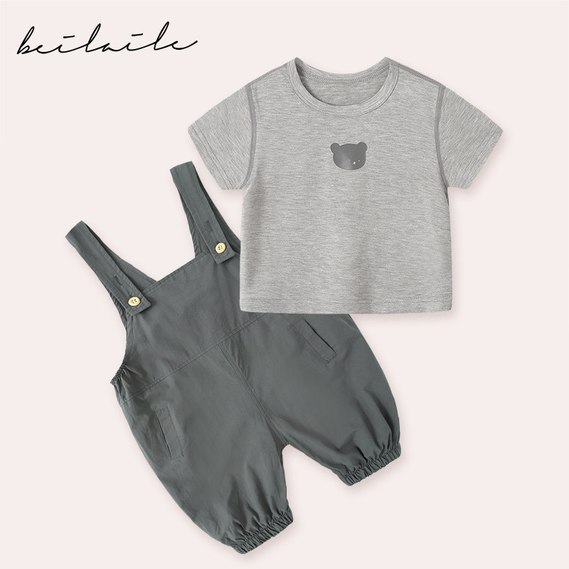 Детский комплект, пижама, летняя одежда для мальчика, летняя одежда, тонкие подтяжки, боди, комбинезон, штаны